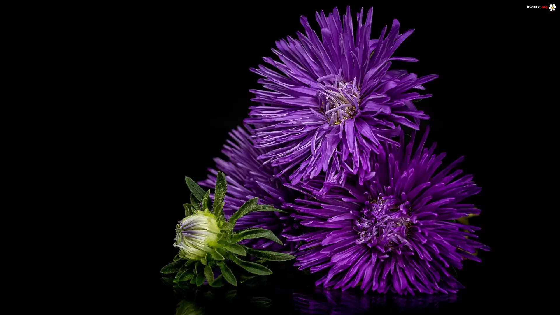 Kwiaty, Astry, Fioletowe, Ciemne tło - Zdjęcia