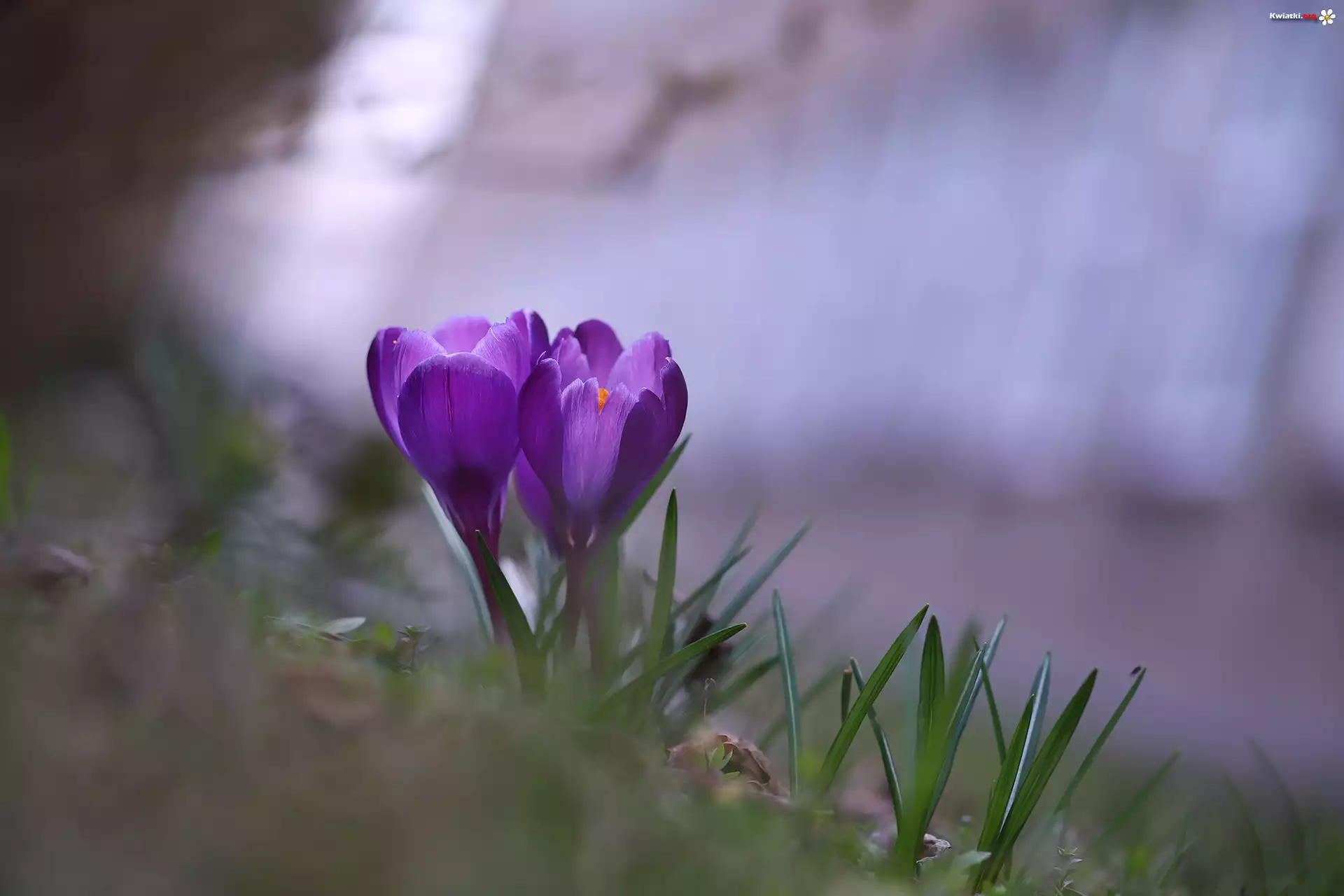 Kwiat Ciemnofioletowe, Dwa, Krokusy, Kwiaty