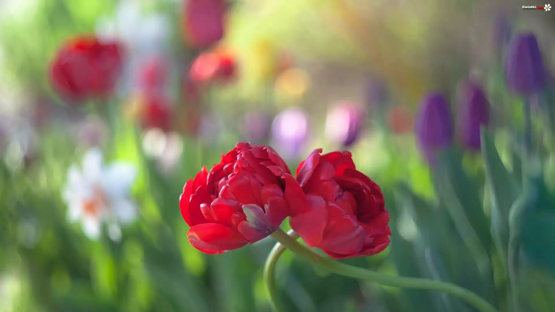 Kwiaty, Dwa, Czerwone, Tulipany - Zdjęcia