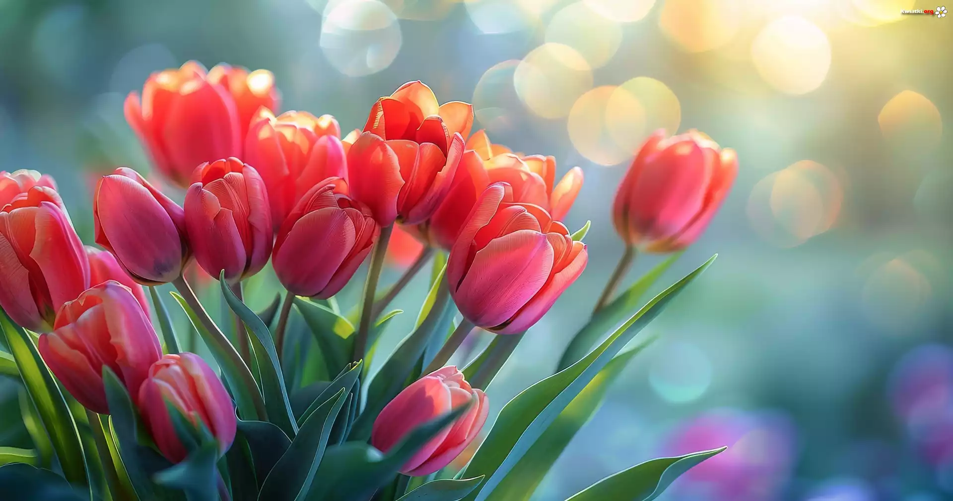 Tulipany, Kwiaty, Czerwone Światło, Grafika - Zdjęcia