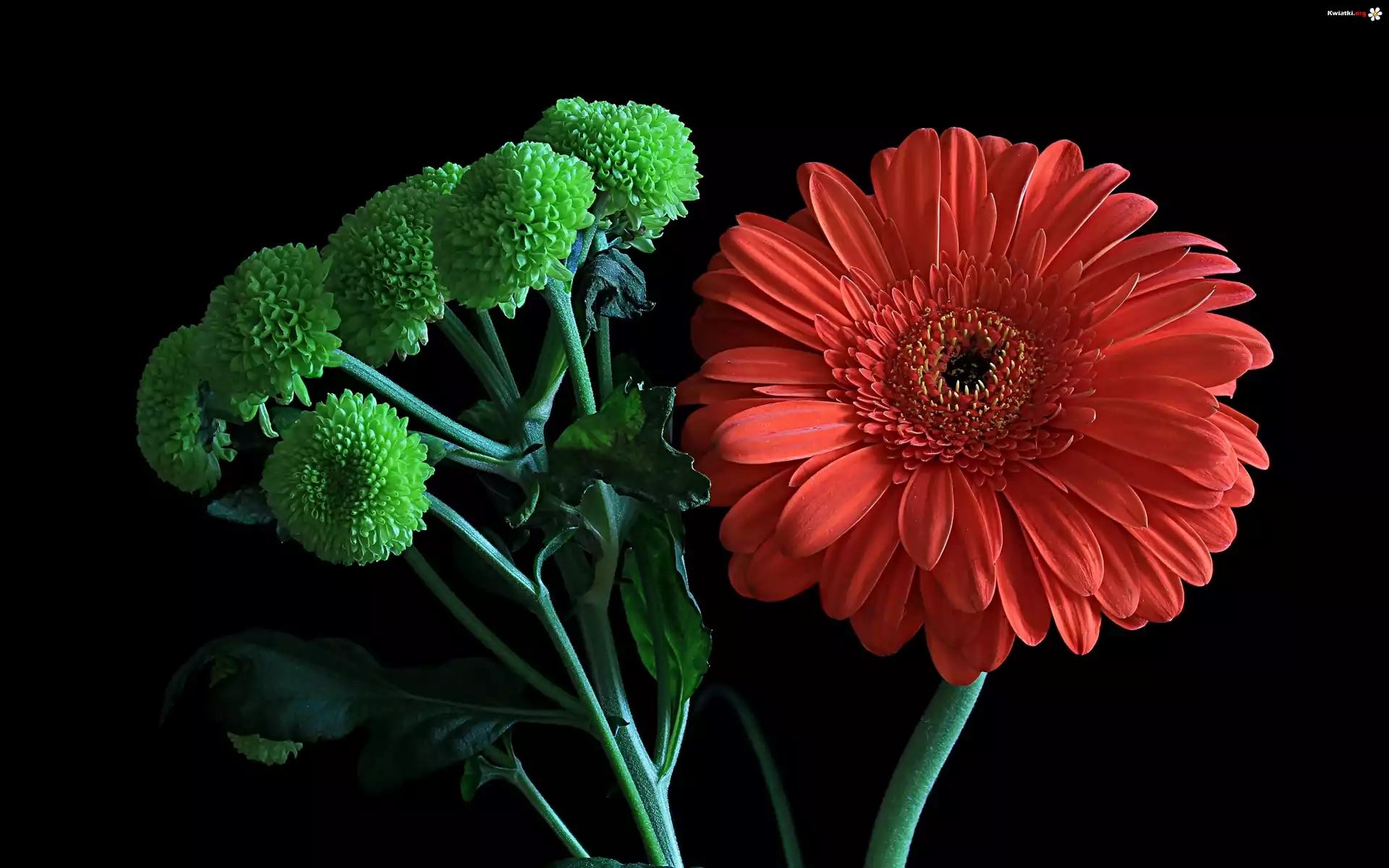 Kwiat Kwiaty, Zielone, Czerwone, Gerbera