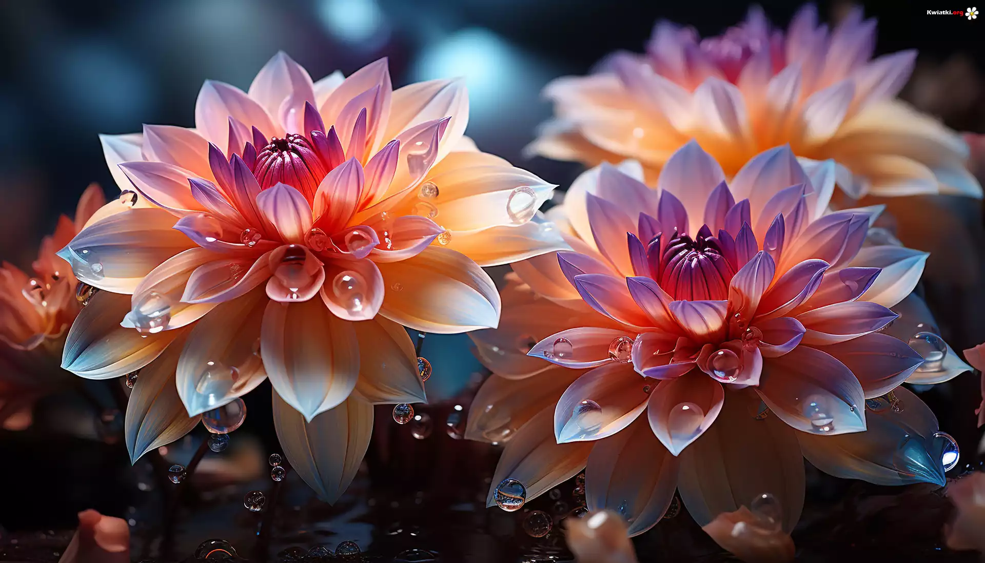 Kolorowe, Kwiaty, Dalie, Krople, Grafika - Zdjęcia