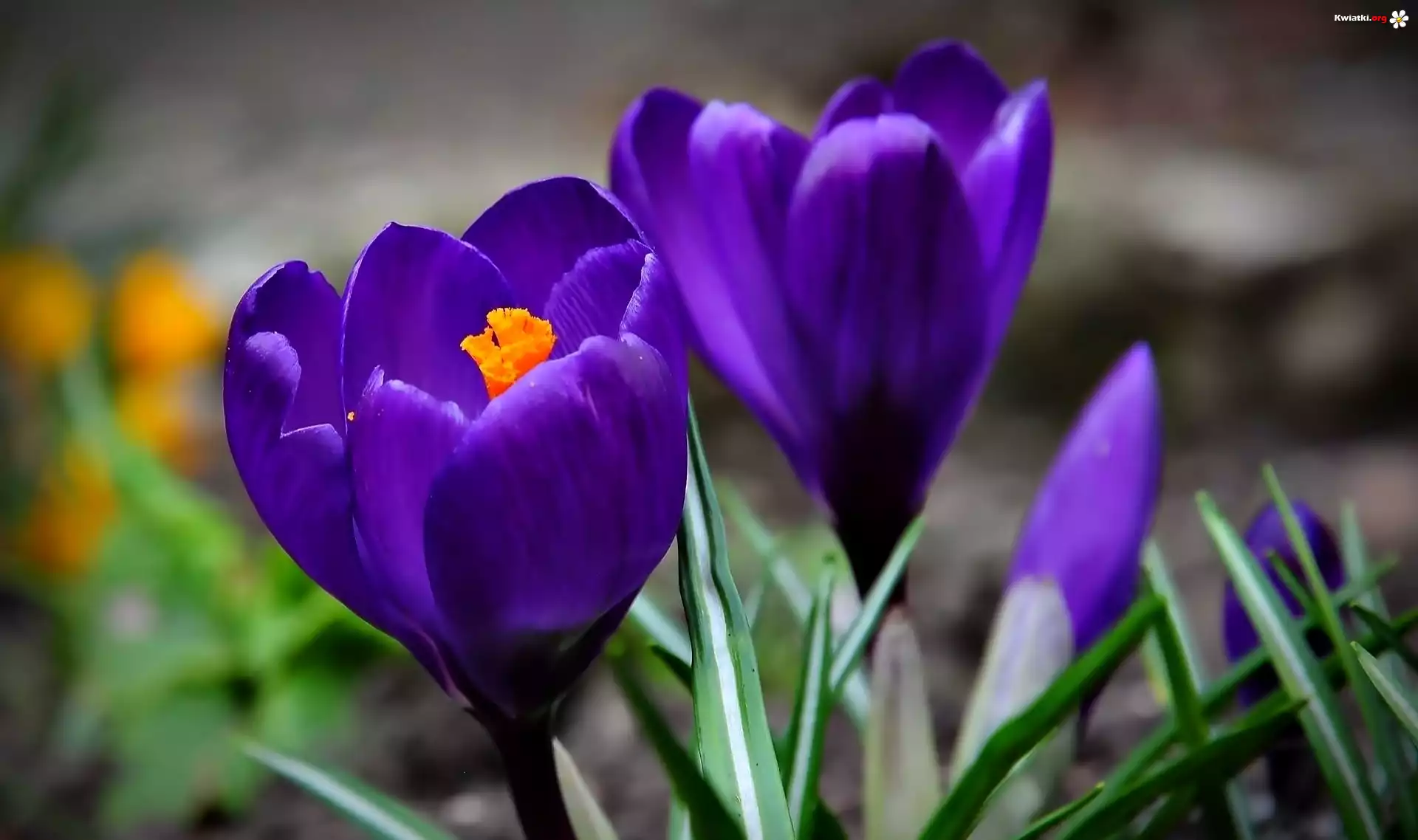 Fioletowe, Kwiaty, Krokusy - Zdjęcia