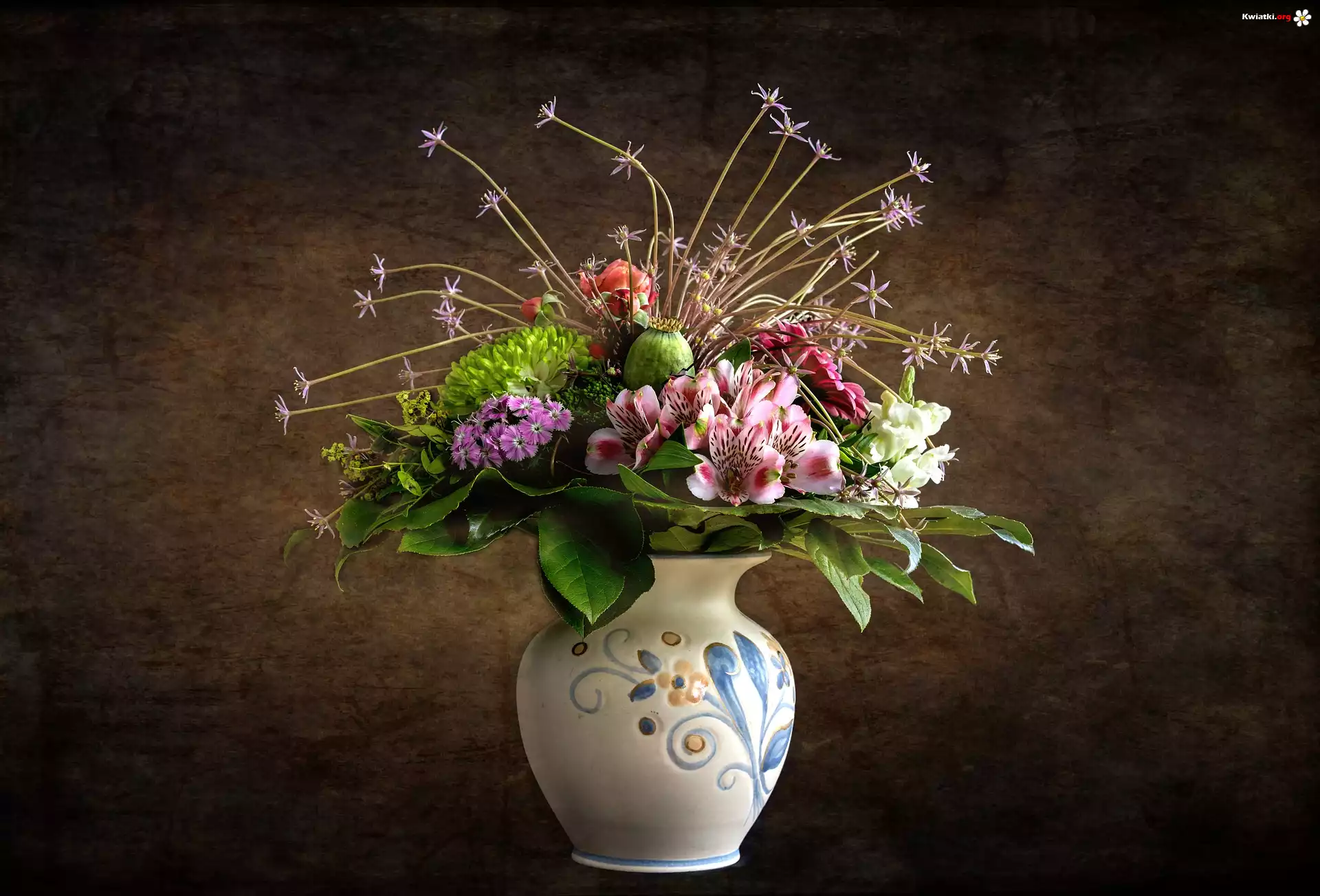 Kwiaty, Bukiet, Gliniany, Wazon - Zdjęcia