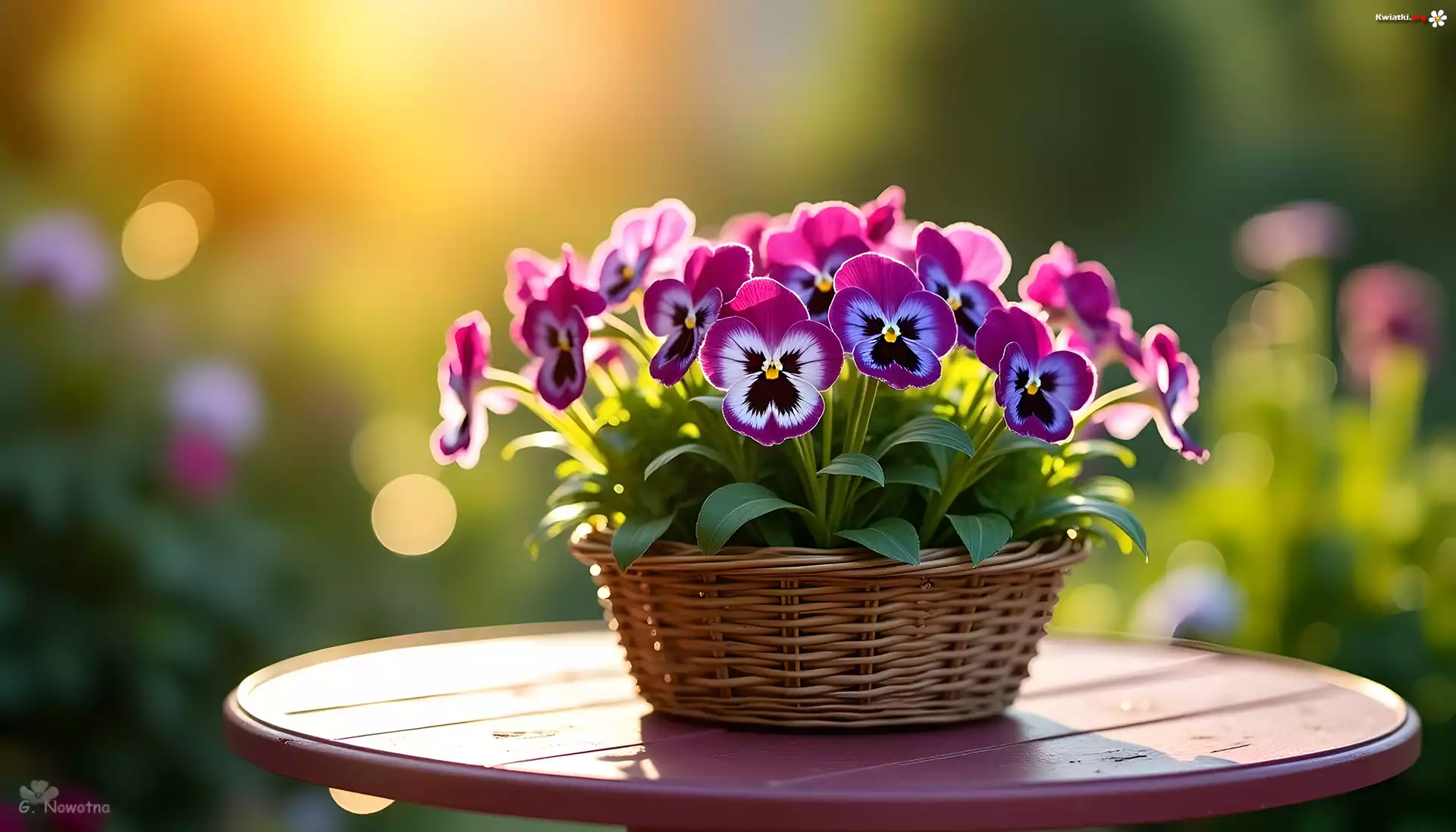 Fioletowo-białe, Bratki, Kwiaty, Koszyk, Grafika - Zdjęcia