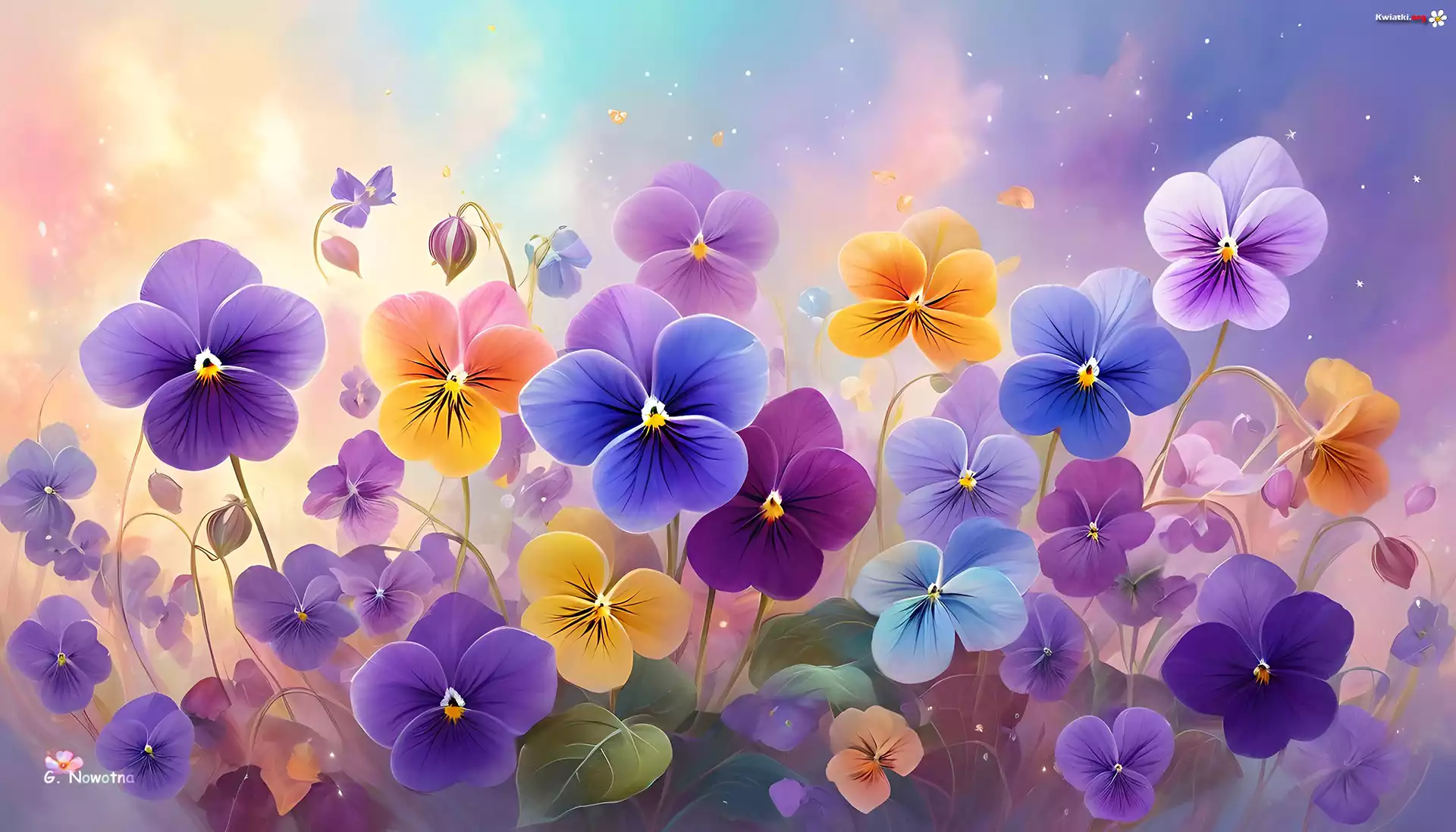 Grafika, Kolorowe, Bratki, Kwiaty - Zdjęcia