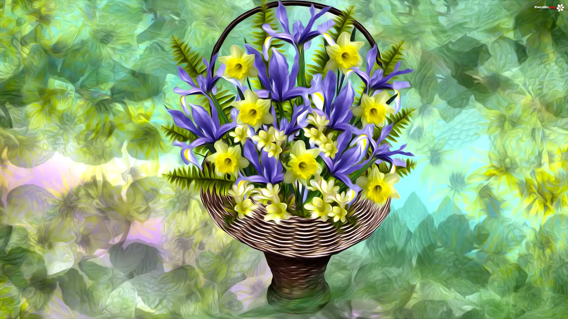 Grafika, Kwiaty, Koszyk, Bukiet kwiatów, Narcyzy żonkile - Zdjęcia