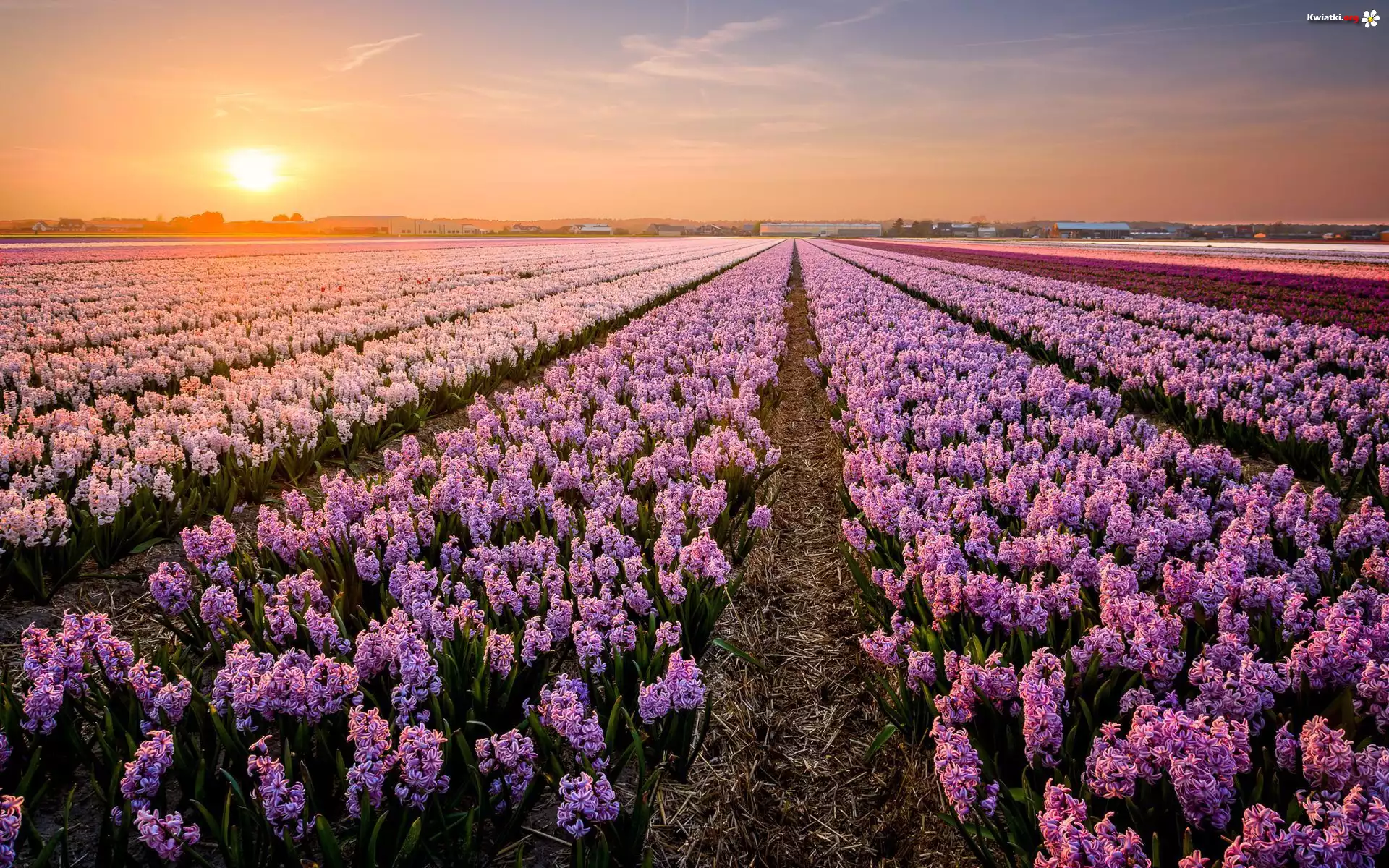 Kwiat Pole, Kwiaty, Hiacynty, Słoneczny blask