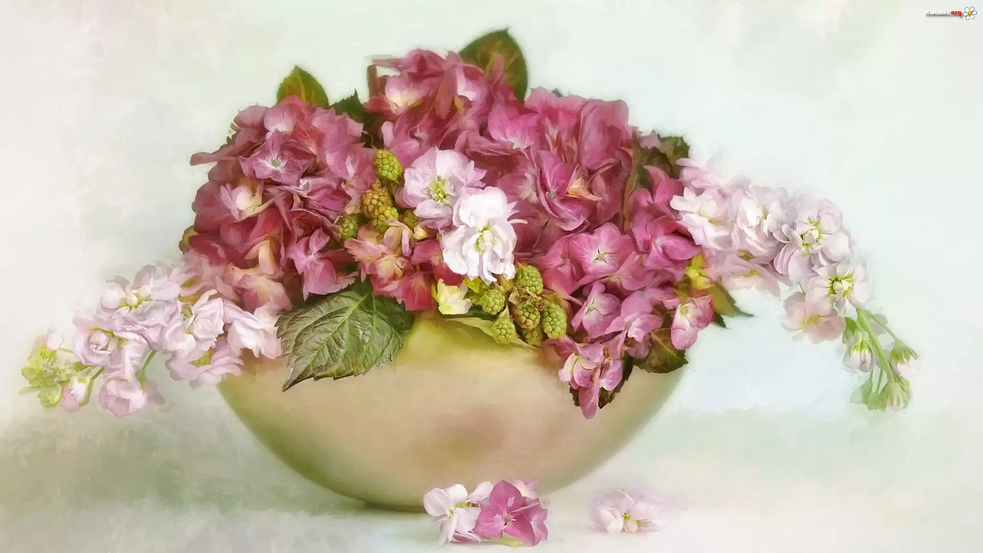 Kwiat Grafika, Kwiaty, Hortensje, Miseczka, Bukiet