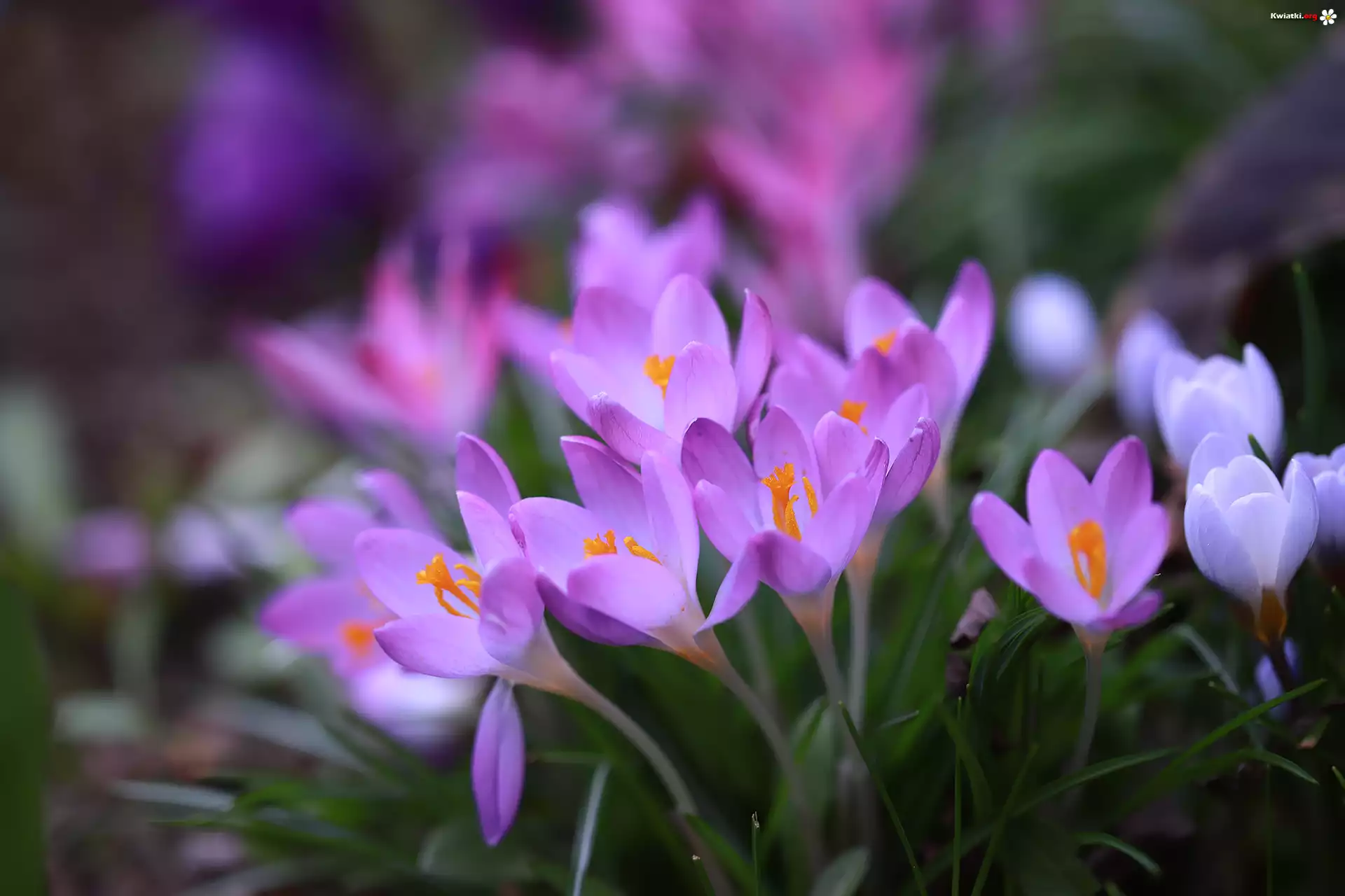 Kwiat Jasnofioletowe, Rozkwitnięte, Krokusy, Kwiaty