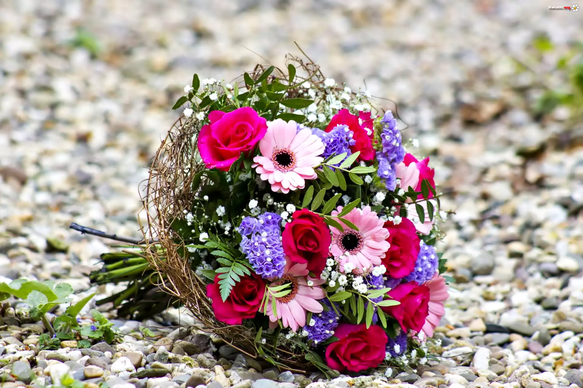 Kwiaty, Róże, Kamienie, Bukiet - Zdjęcia