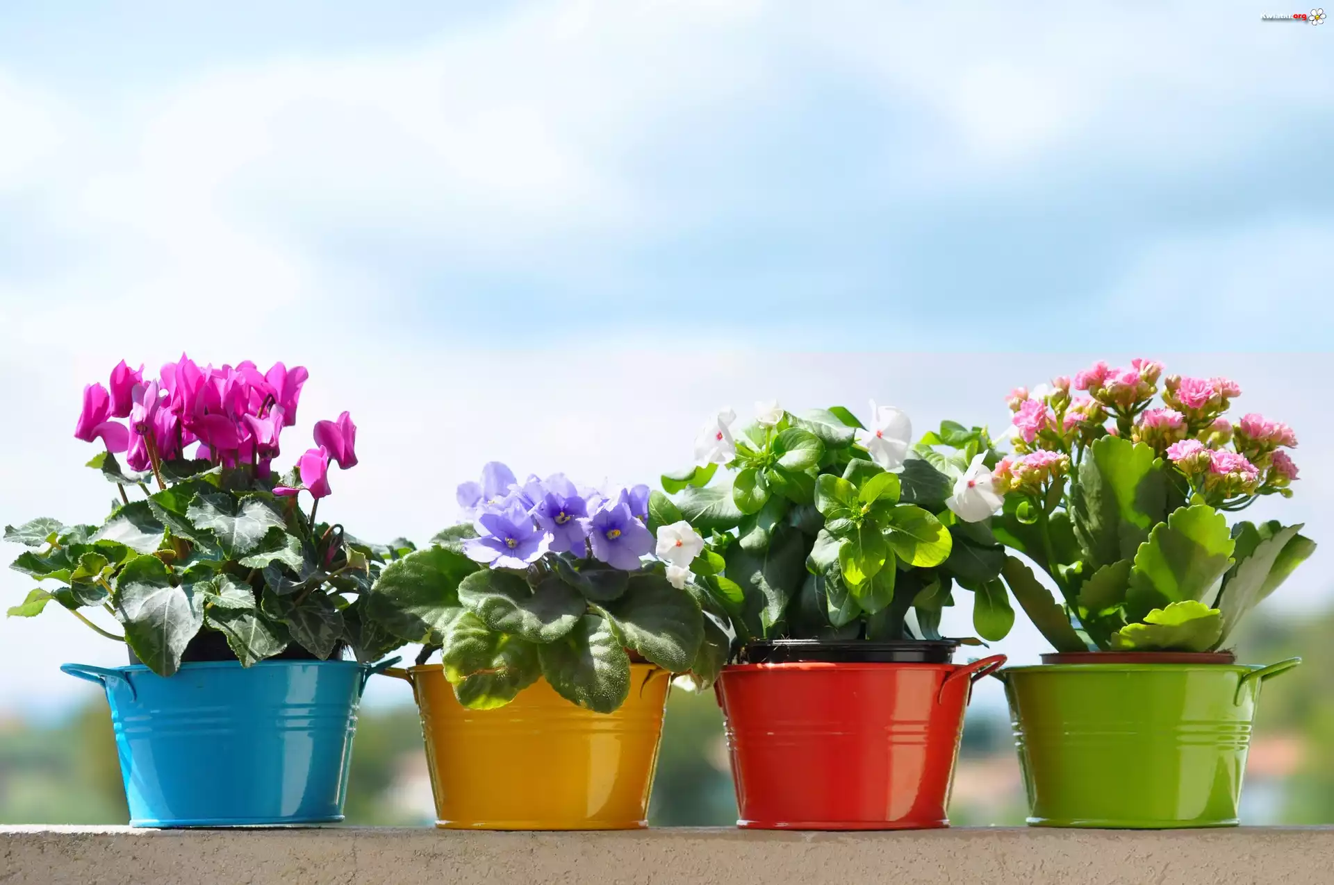 Kwiaty, Doniczkowe, Kolorowe, Wiaderka - Zdjęcia