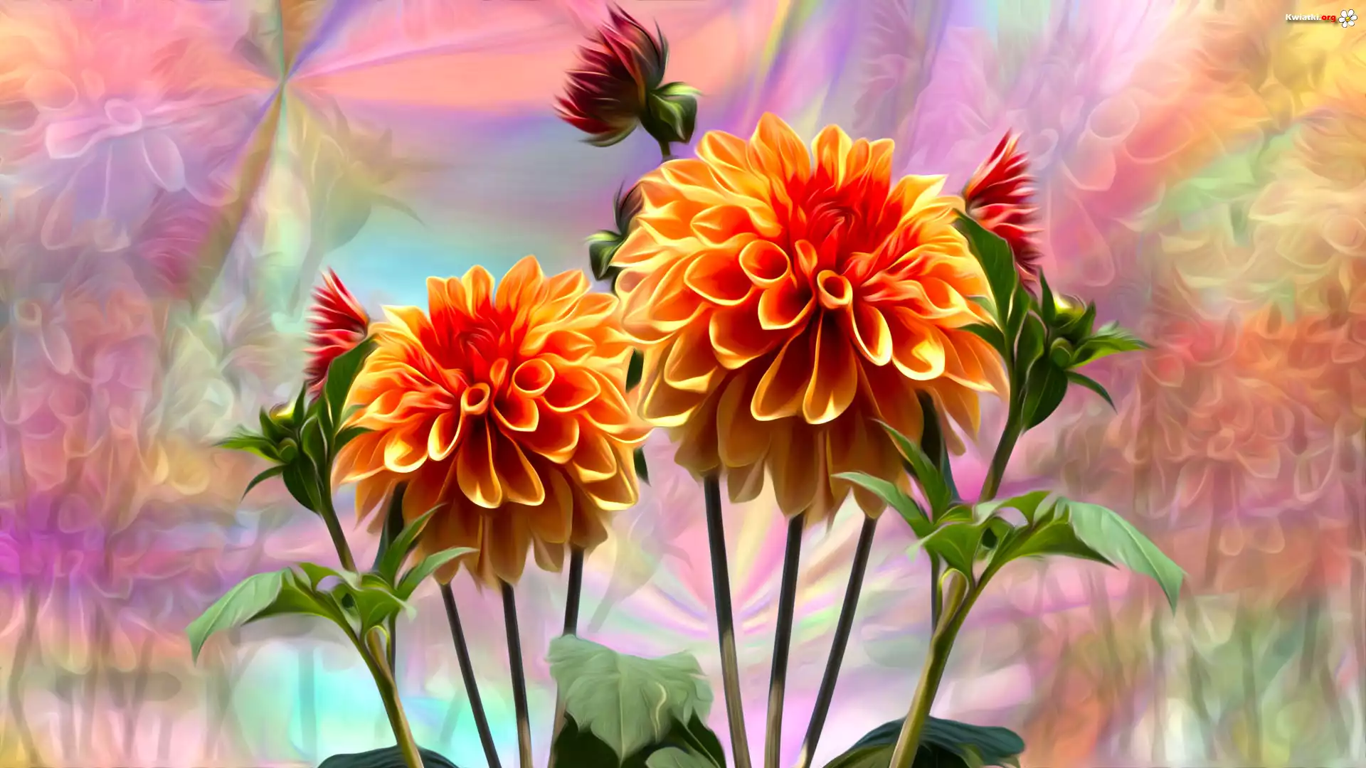 Kwiaty, Dalie, Grafika, Kolorowe tło - Zdjęcia