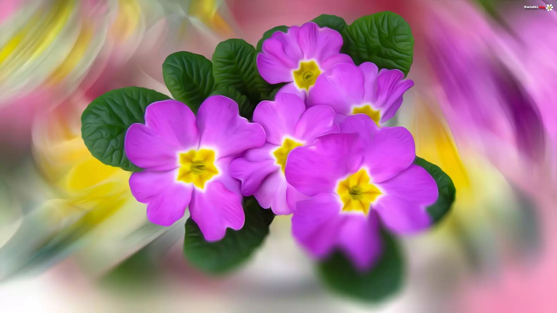 Kwiaty, Pierwiosnki, Kolorowe tło - Zdjęcia