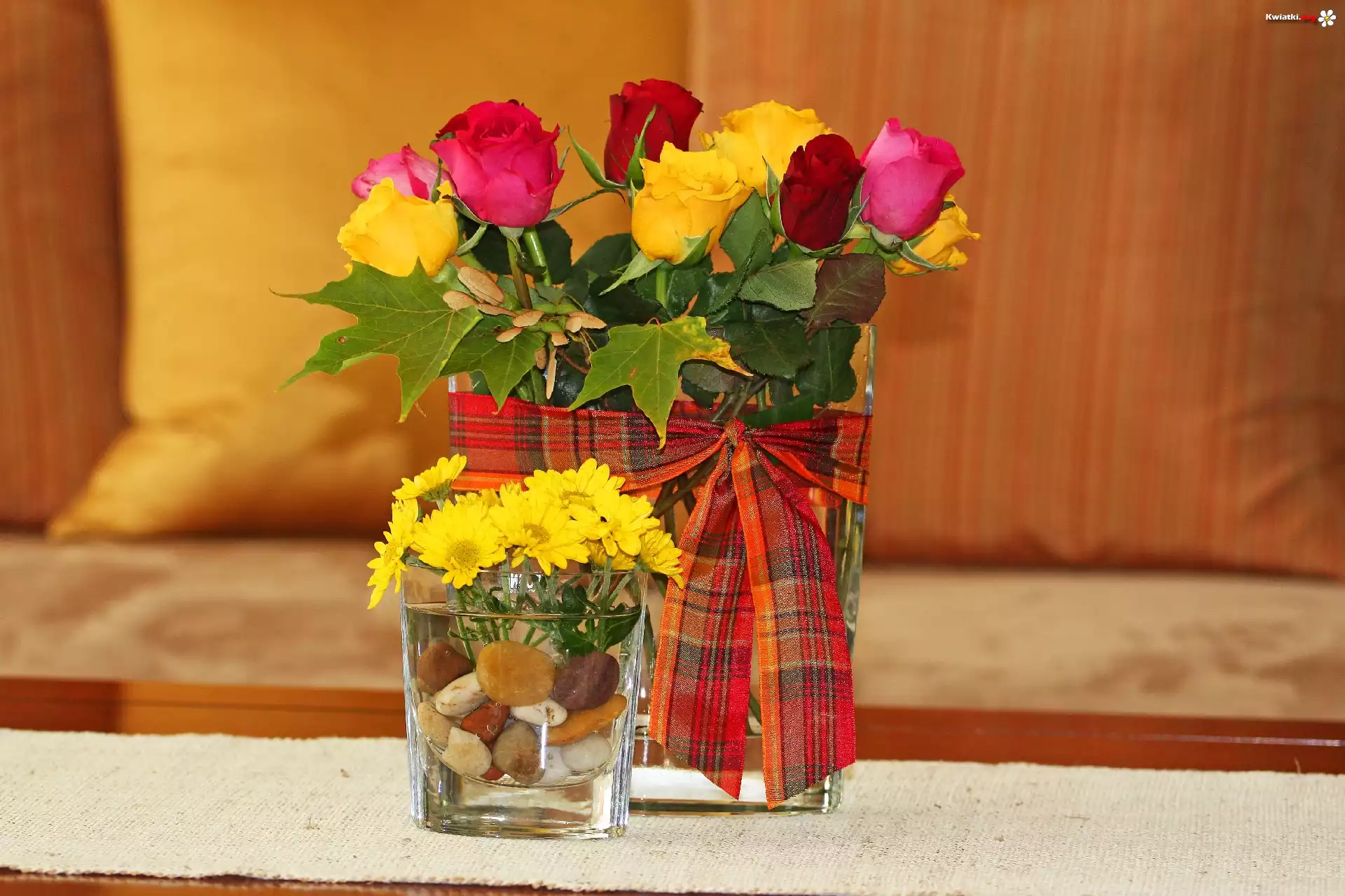 Kwiaty, róże kolorowe, wazon - Zdjęcia