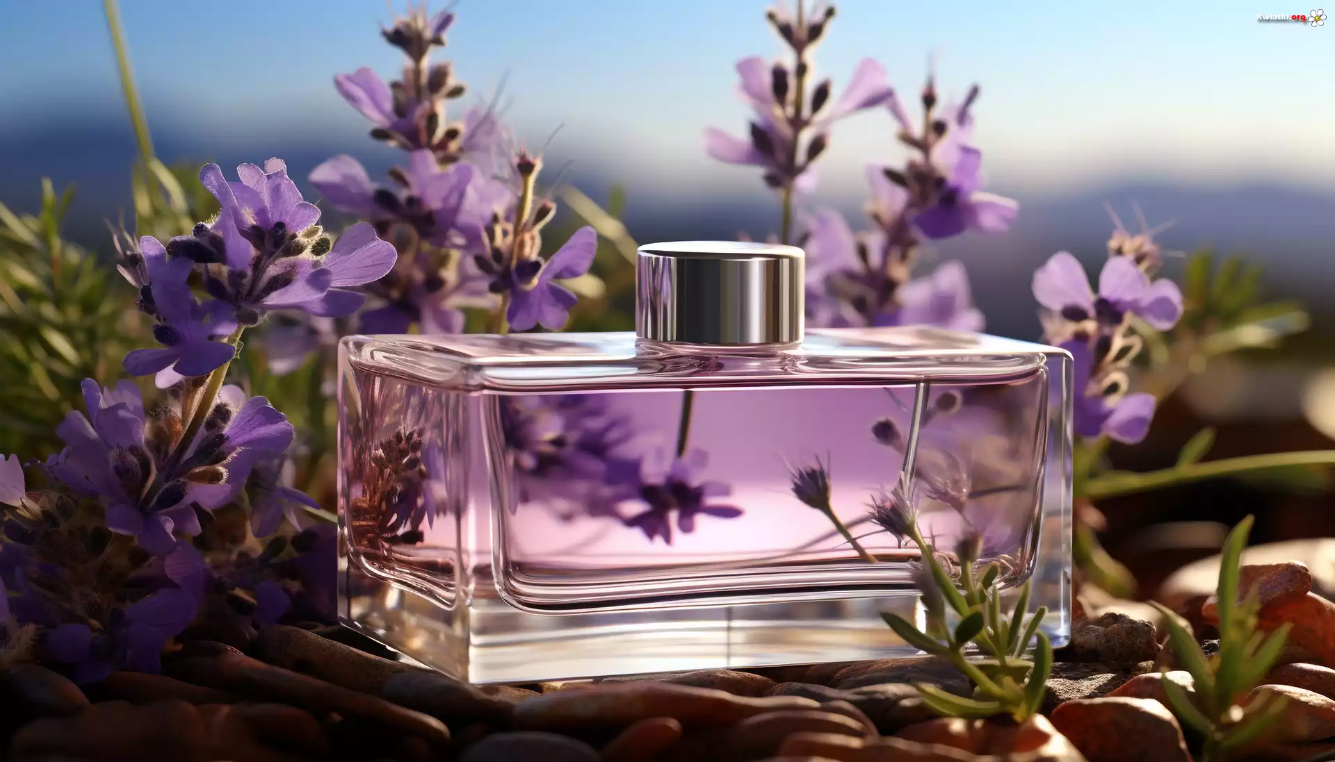 Flakon, Perfumy, Lawenda, Kwiaty, Grafika, Kompozycja - Zdjęcia
