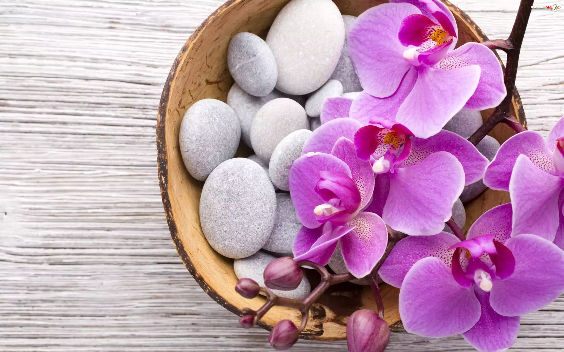 Kwiat Kwiaty, Storczyki, Misa, Kamienie, Kompozycja, Deski