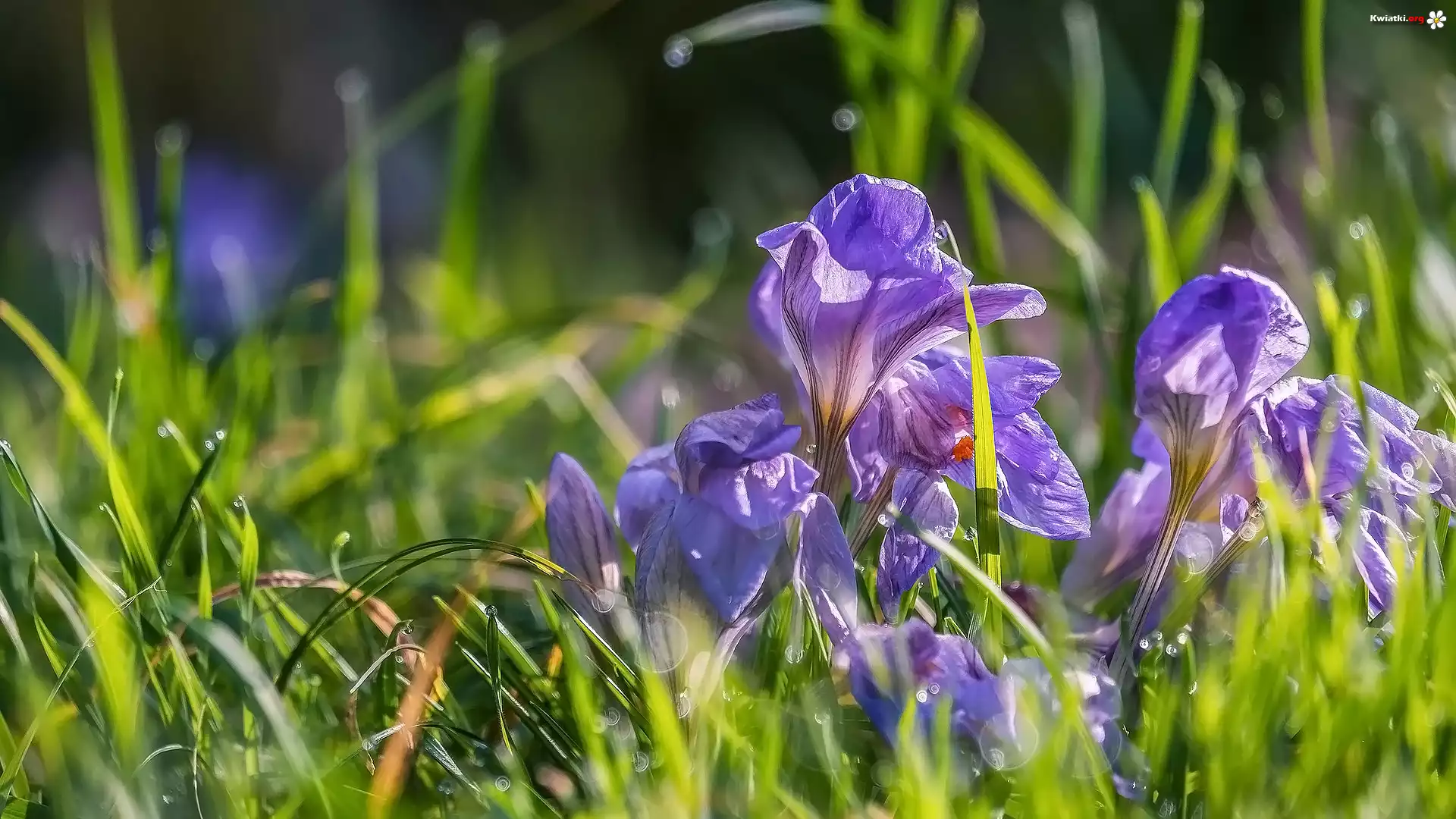 Kwiaty, Fioletowe, Krokusy, Trawa - Zdjęcia