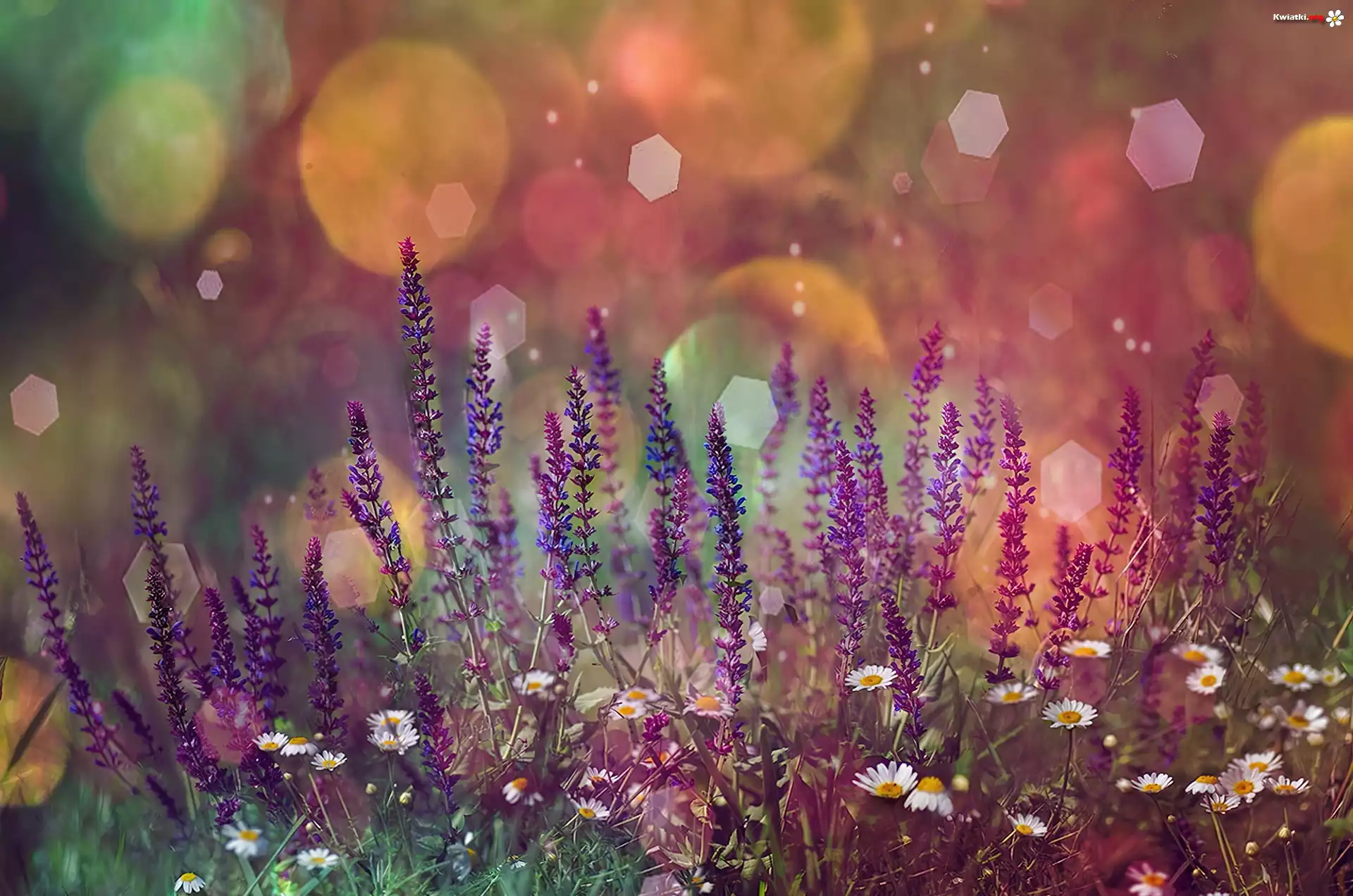 Kwiaty, Stokrotki, Lawenda, Blask - Zdjęcia