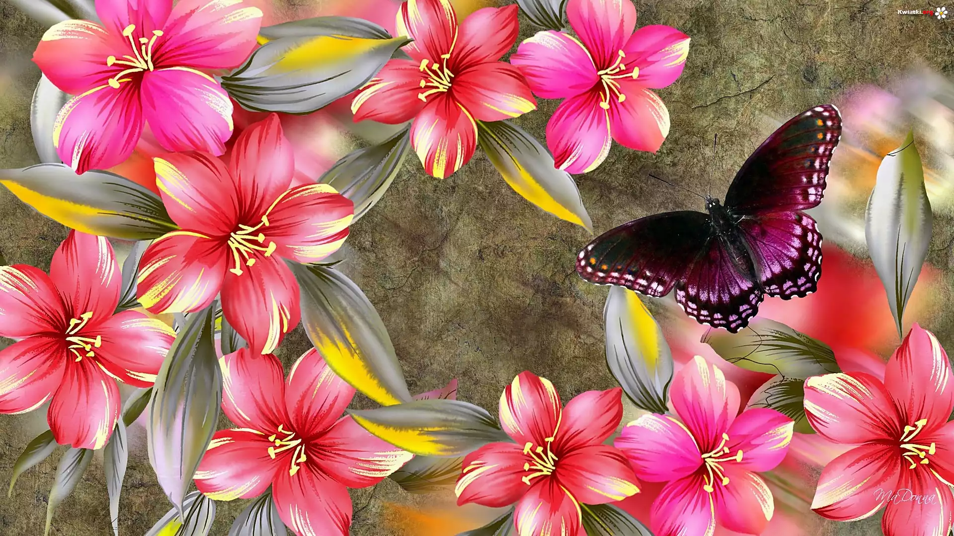 Kwiaty, Hibiskus, Motyl, Art - Zdjęcia