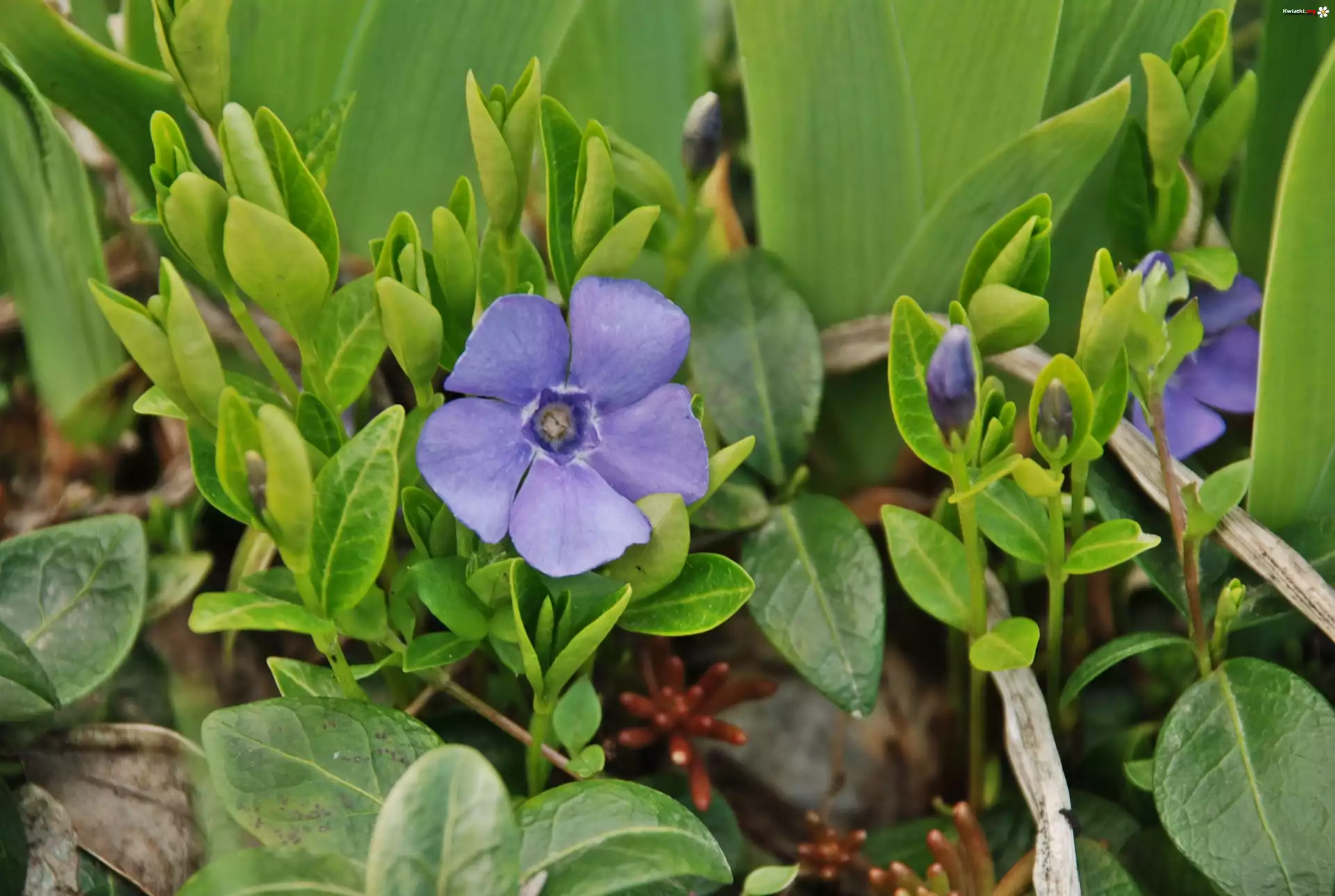 Niebieskie, Kwiaty, Barwinek - Zdjęcia
