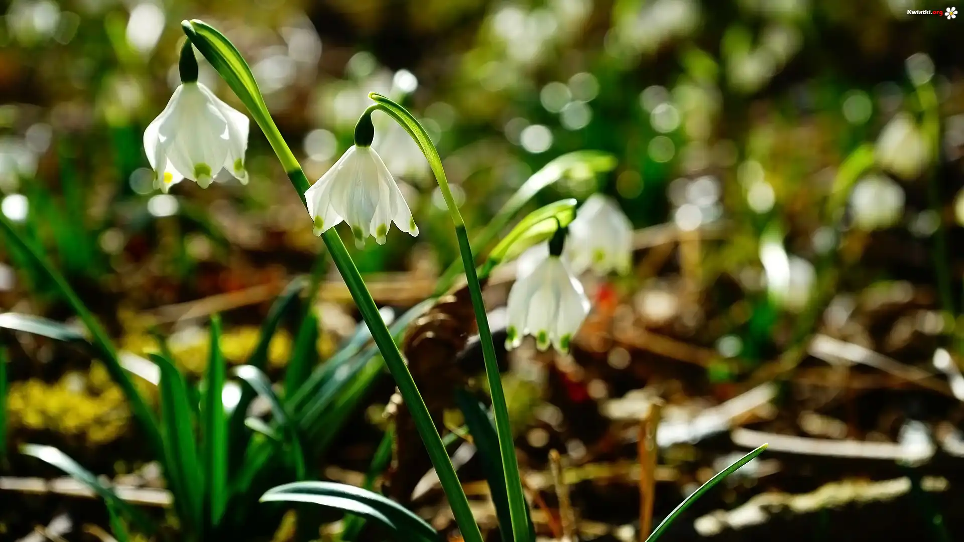 Kwiaty, Pochylone, Białe, Śnieżyce, Listki - Zdjęcia
