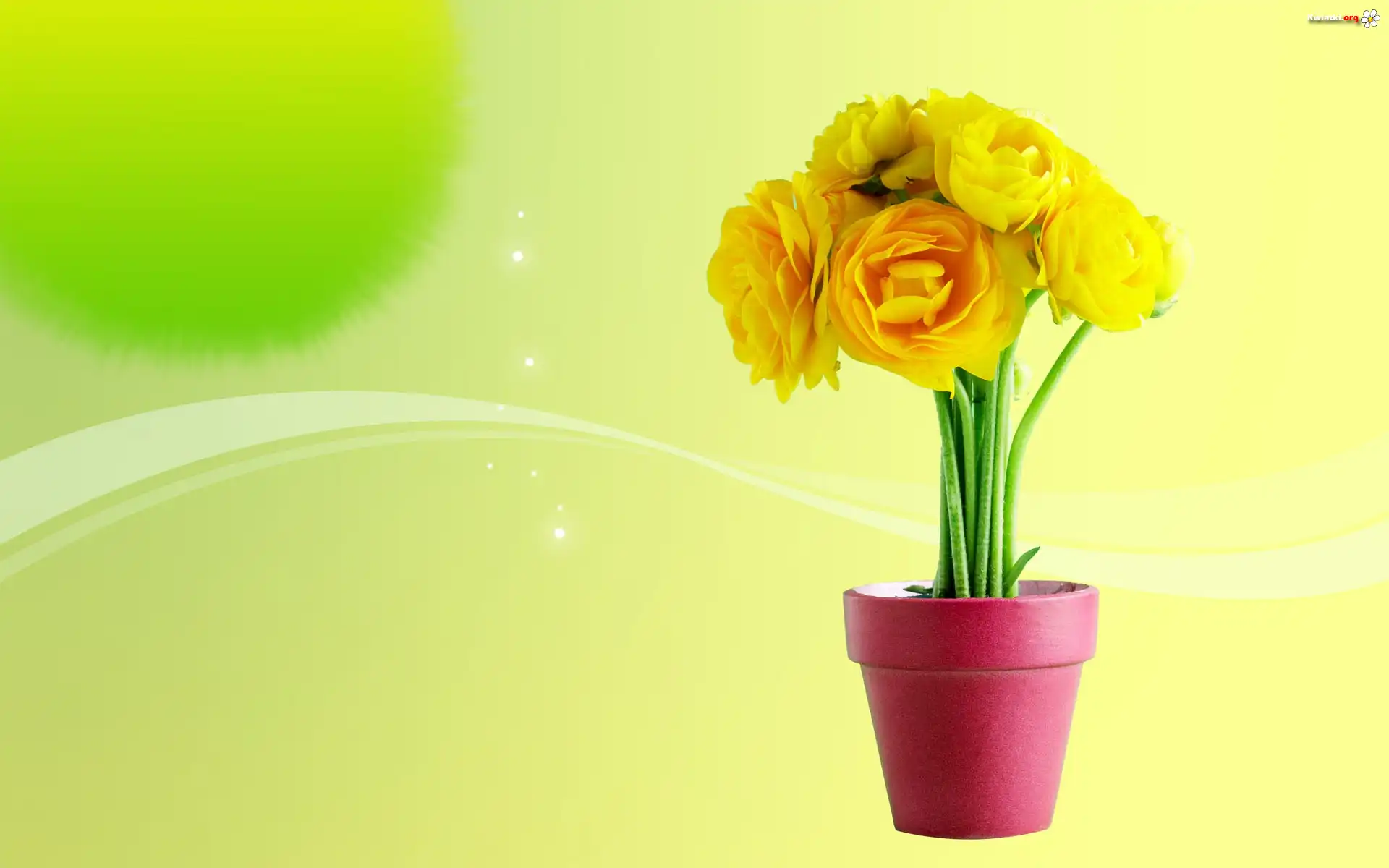 Żółte, Kwiaty, Doniczka - Zdjęcia