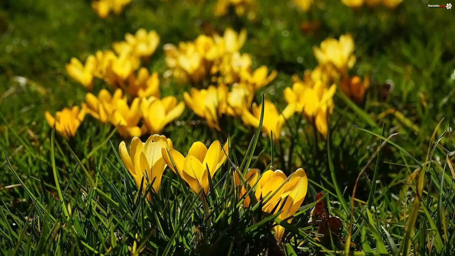 Kwiaty, Krokusy, Żółte, Trawa - Zdjęcia