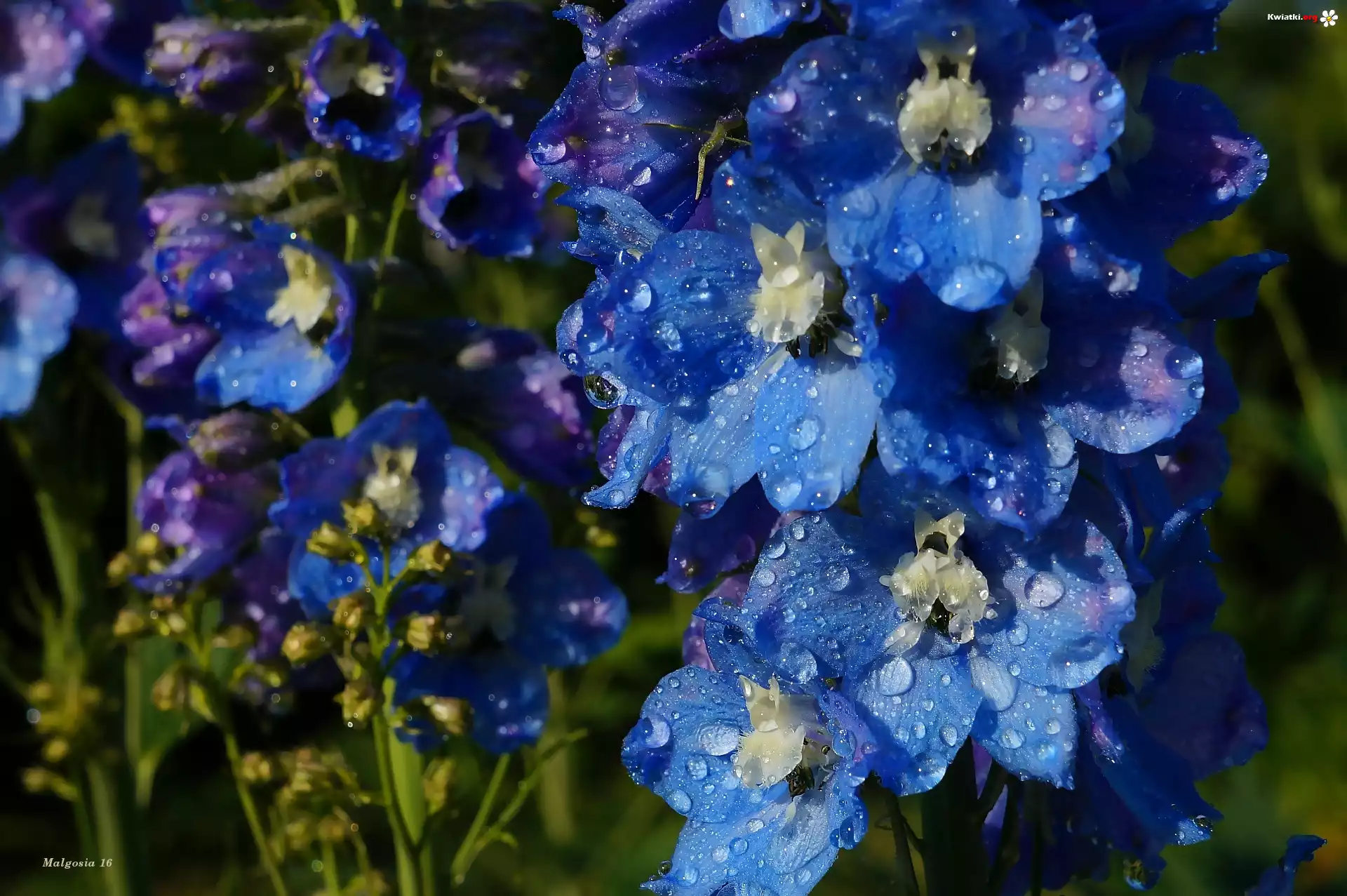 Kwiat Kwiaty, Niebieskie, Ostróżka, Krople