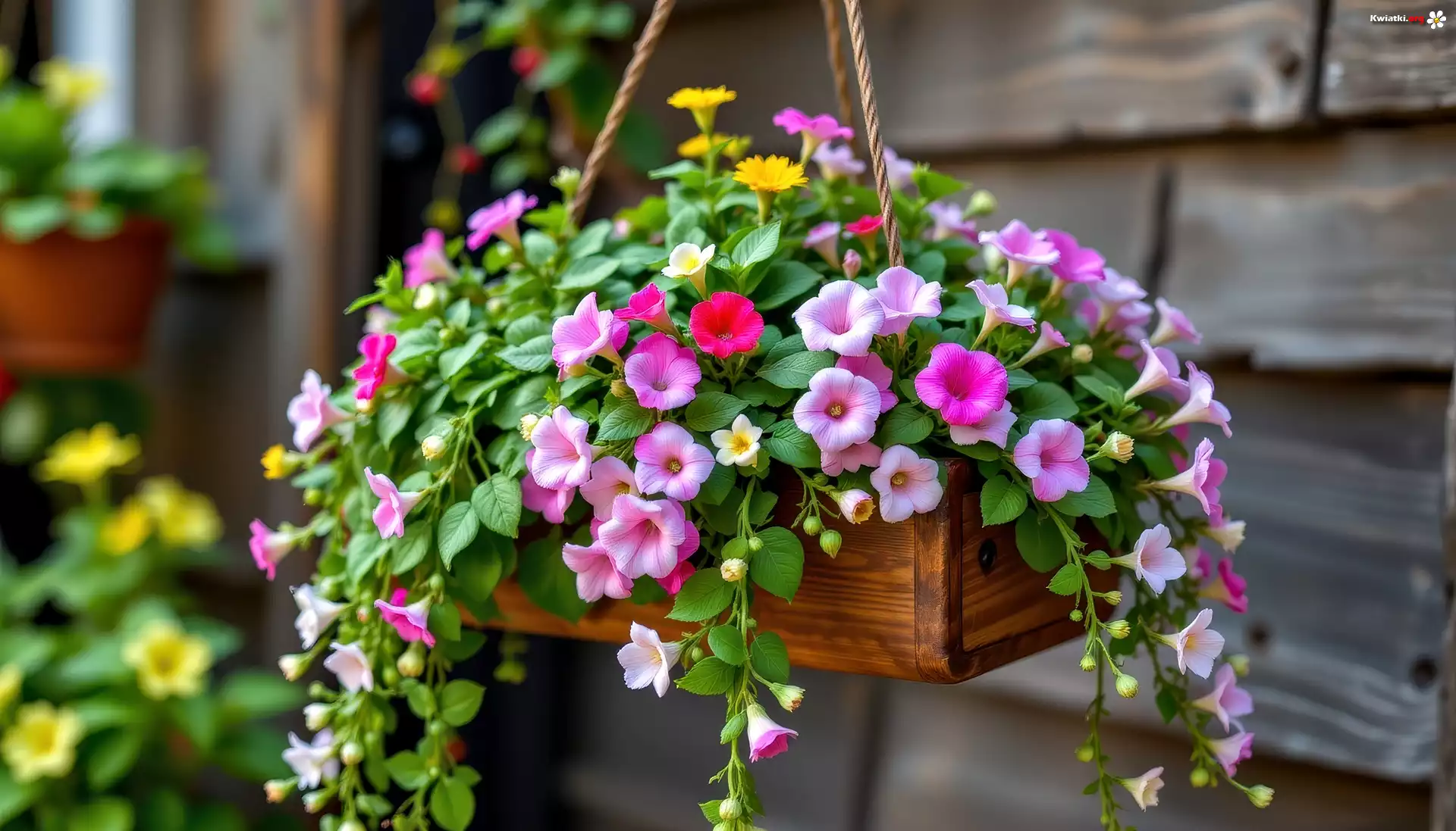 Wiszące, Kwiaty, Petunie, Skrzynka, Grafika - Zdjęcia