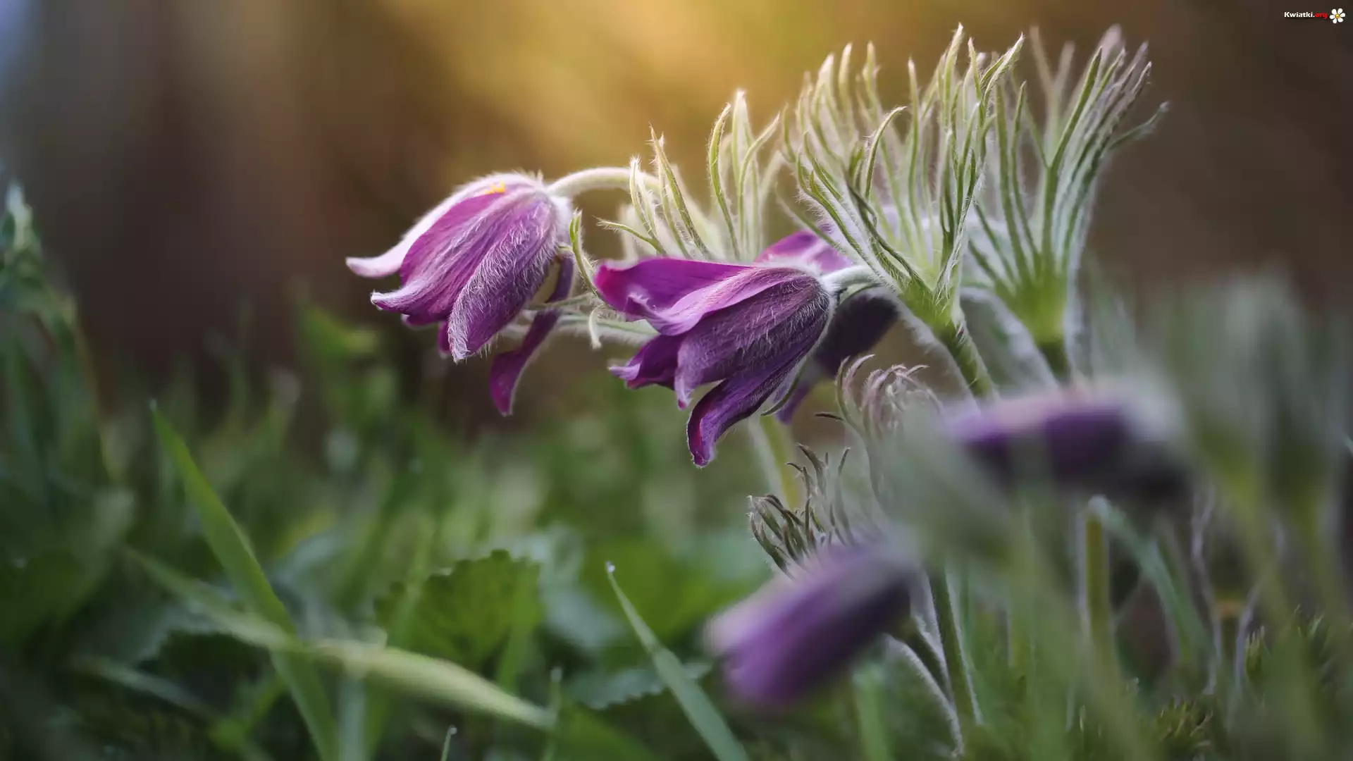 Pochylone, Fioletowe, Sasanki, Kwiaty - Zdjęcia