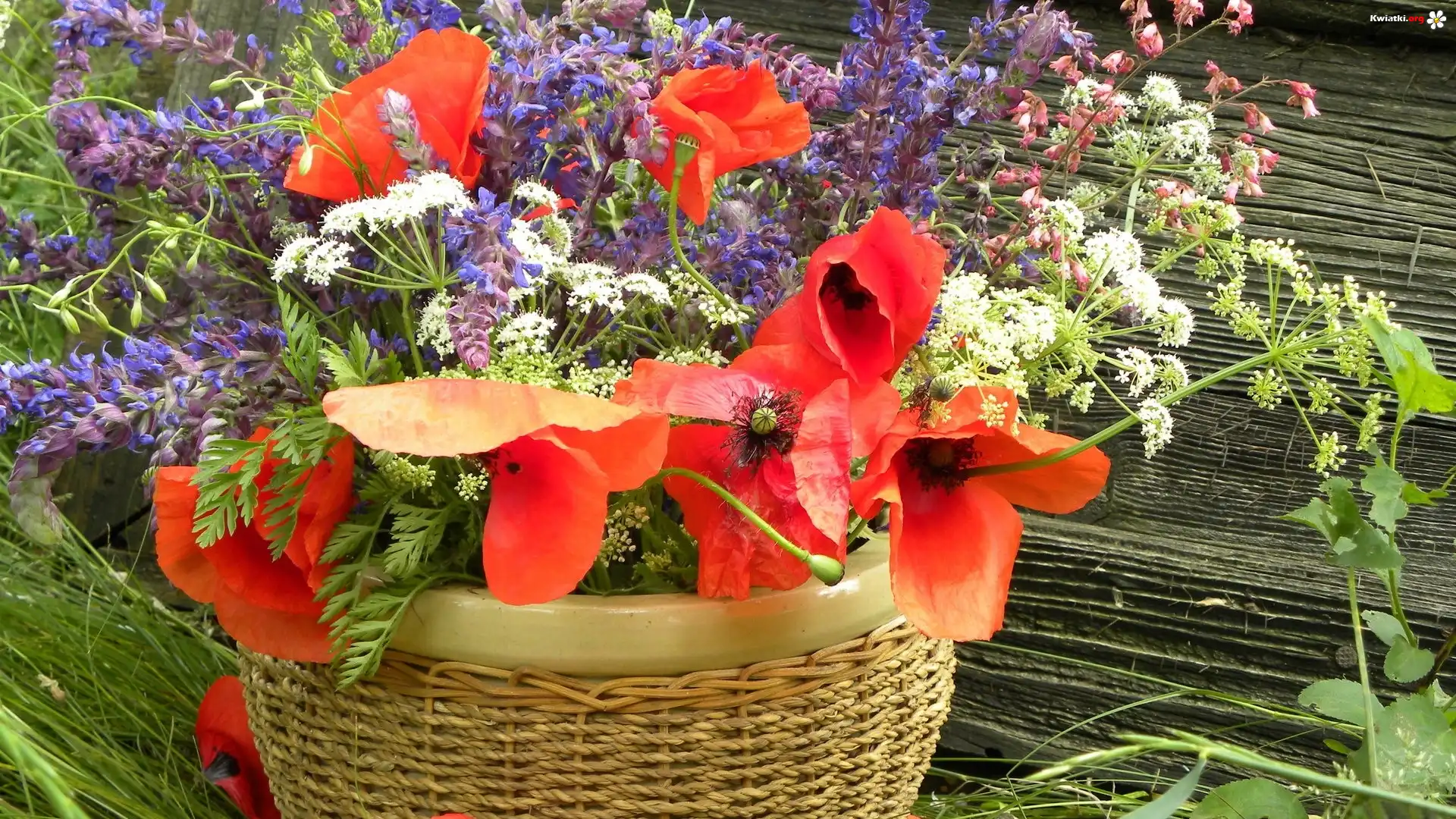 Kwiaty, Bukiet, Polne, Maki - Zdjęcia