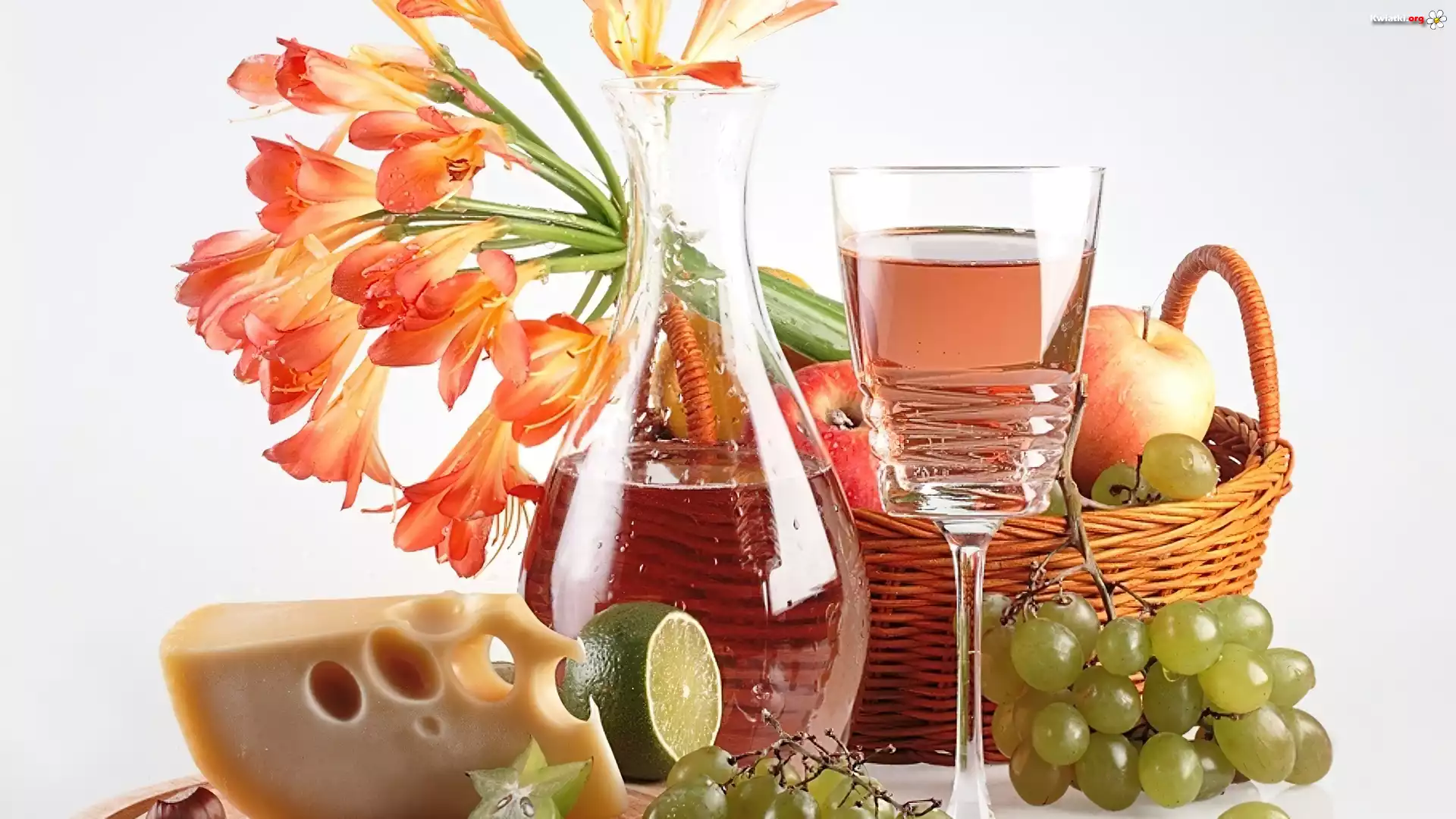 Kwiat Pomarańczowe, Kwiaty, Wiklinowy, Kosz, Winogrona, Ser, Wino