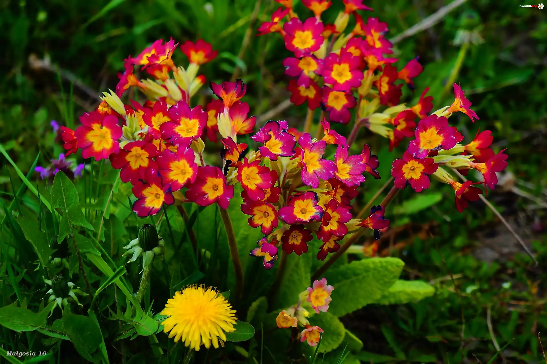 Kwiaty, Wiosenne, Mlecz, Mniszek, Pospolity, Prymula - Zdjęcia