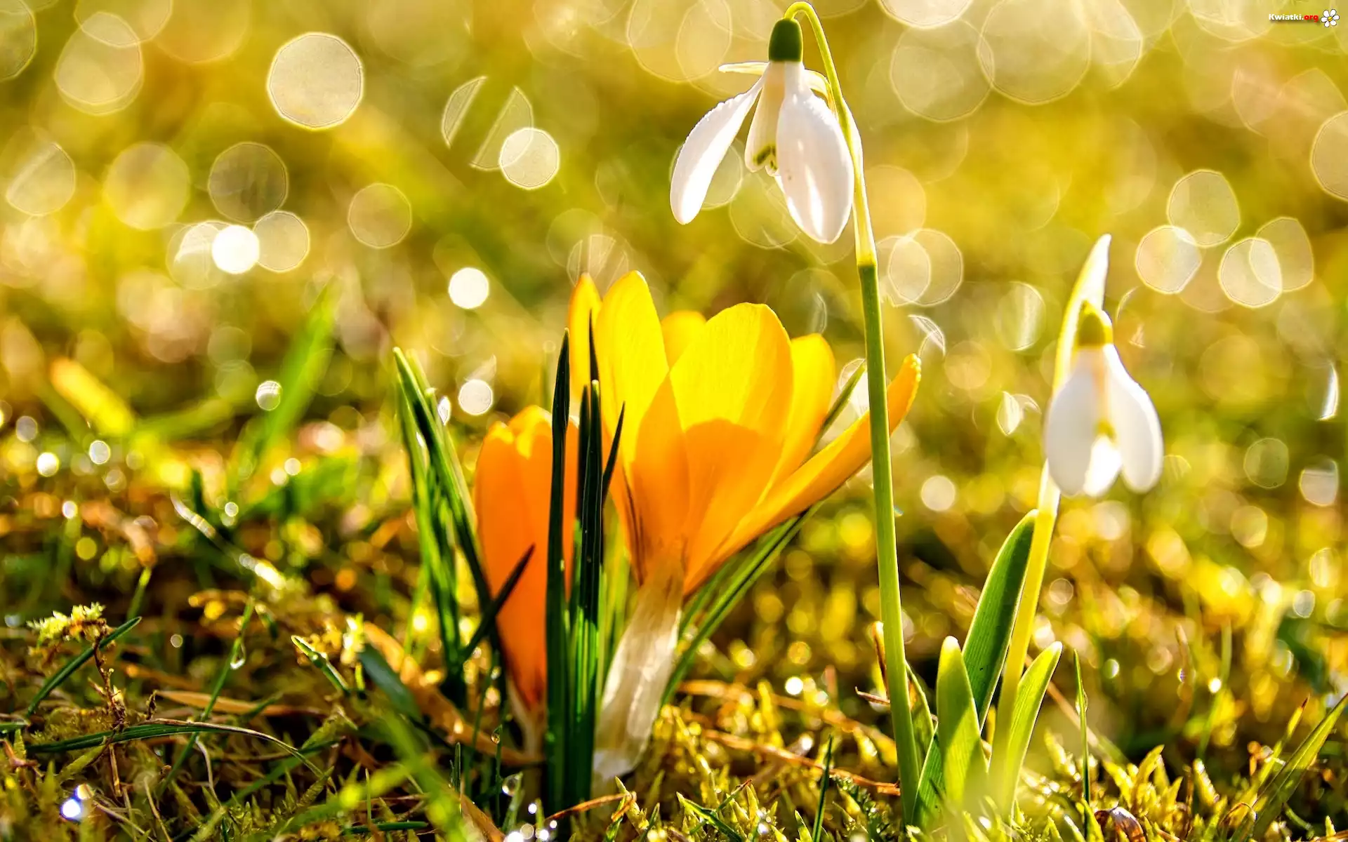 Kwiat Kwiaty, Krokusy, Przebiśniegi, Trawa
