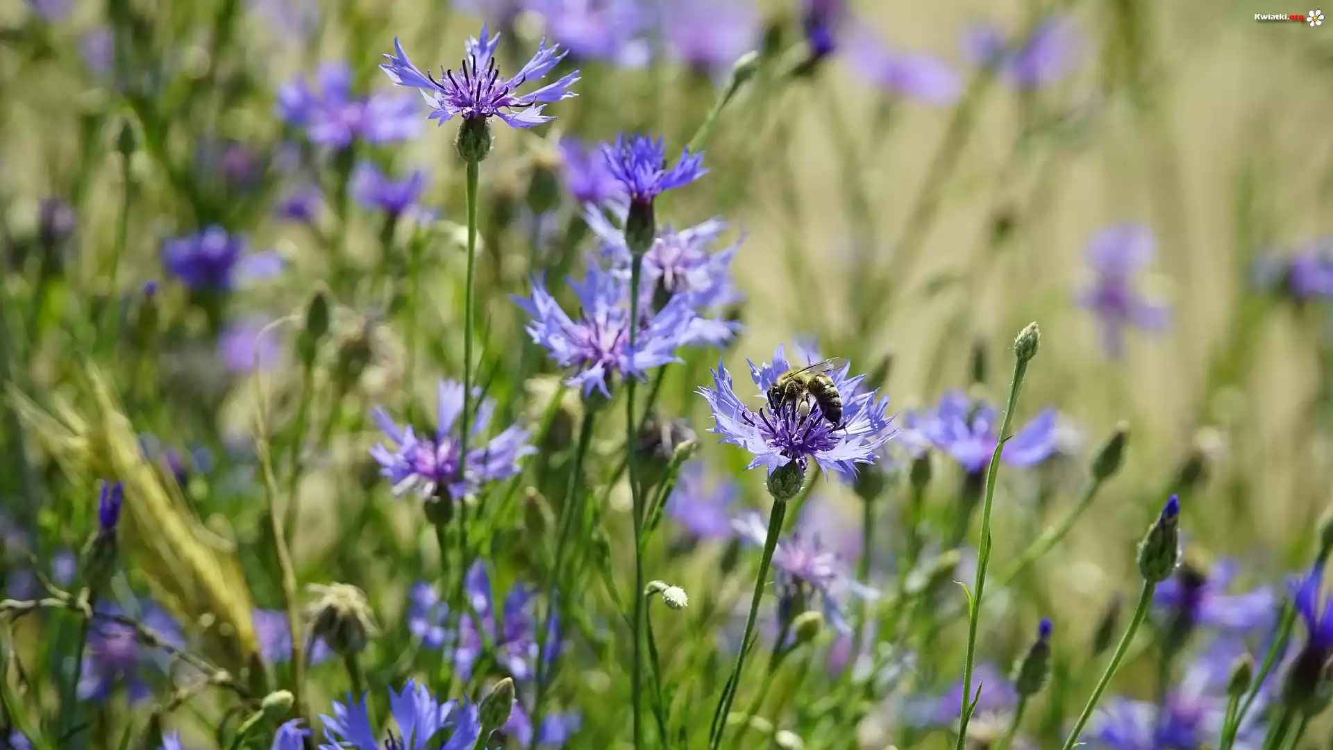 Kwiaty, Chaber, Pszczoła - Zdjęcia