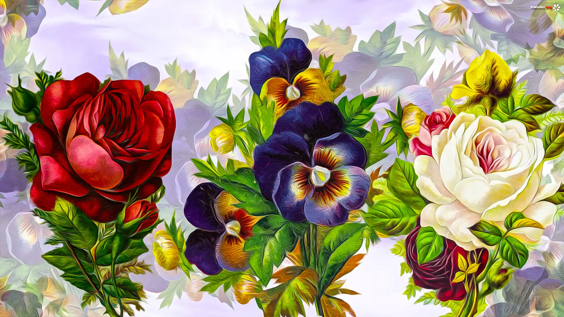 Kwiaty, Bratki, Róże, Grafika - Zdjęcia