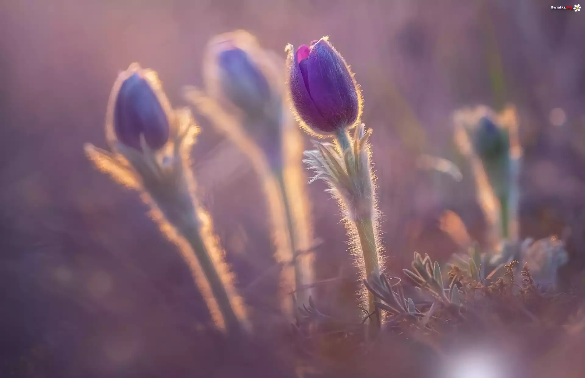 Kwiaty, Fioletowe, Sasanki, Rozmyte, Tło - Zdjęcia