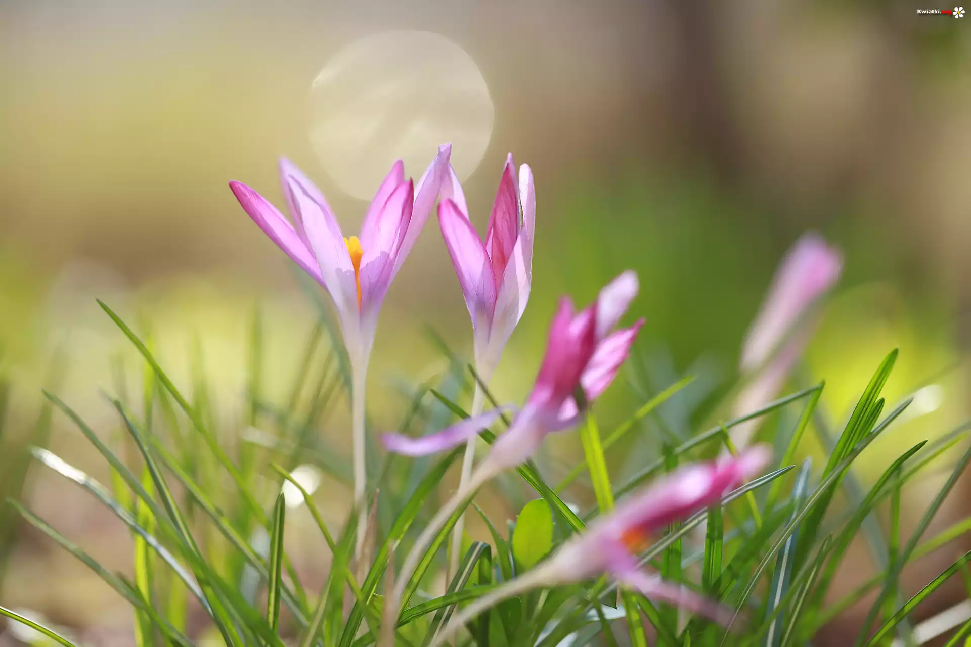 Różowe, Rozkwitające, Krokusy, Kwiaty - Zdjęcia