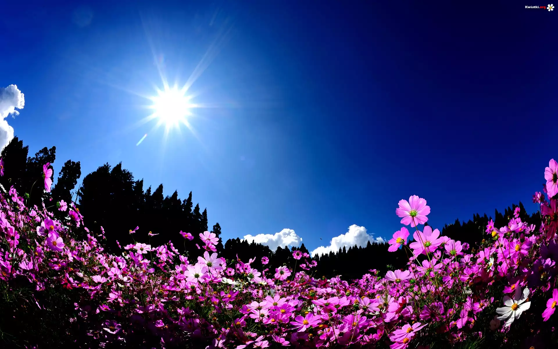 Różowe, Kwiaty, Słońce - Zdjęcia