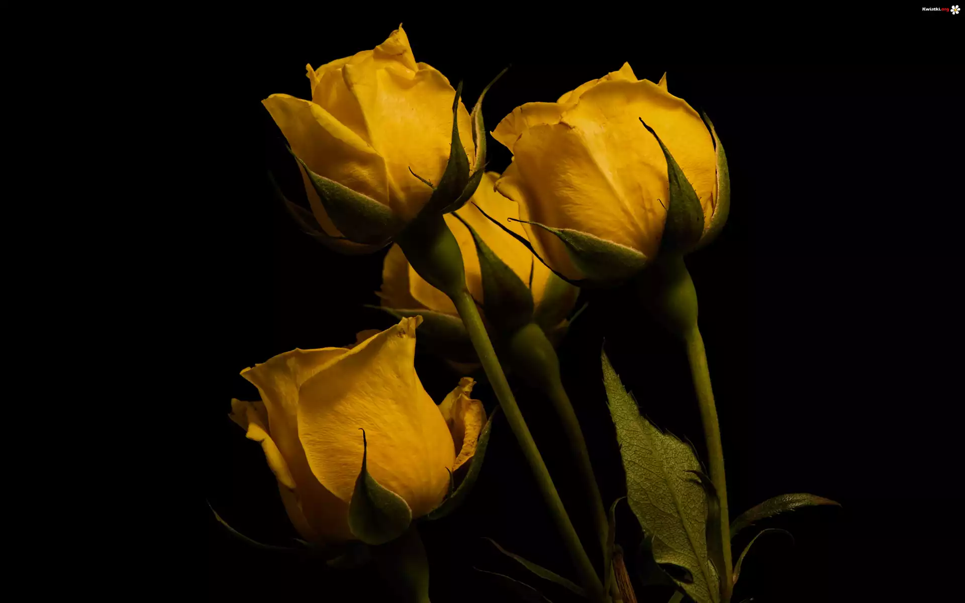 Kwiat Kwiaty, Cztery, Żółte, Róże, Tło czarne