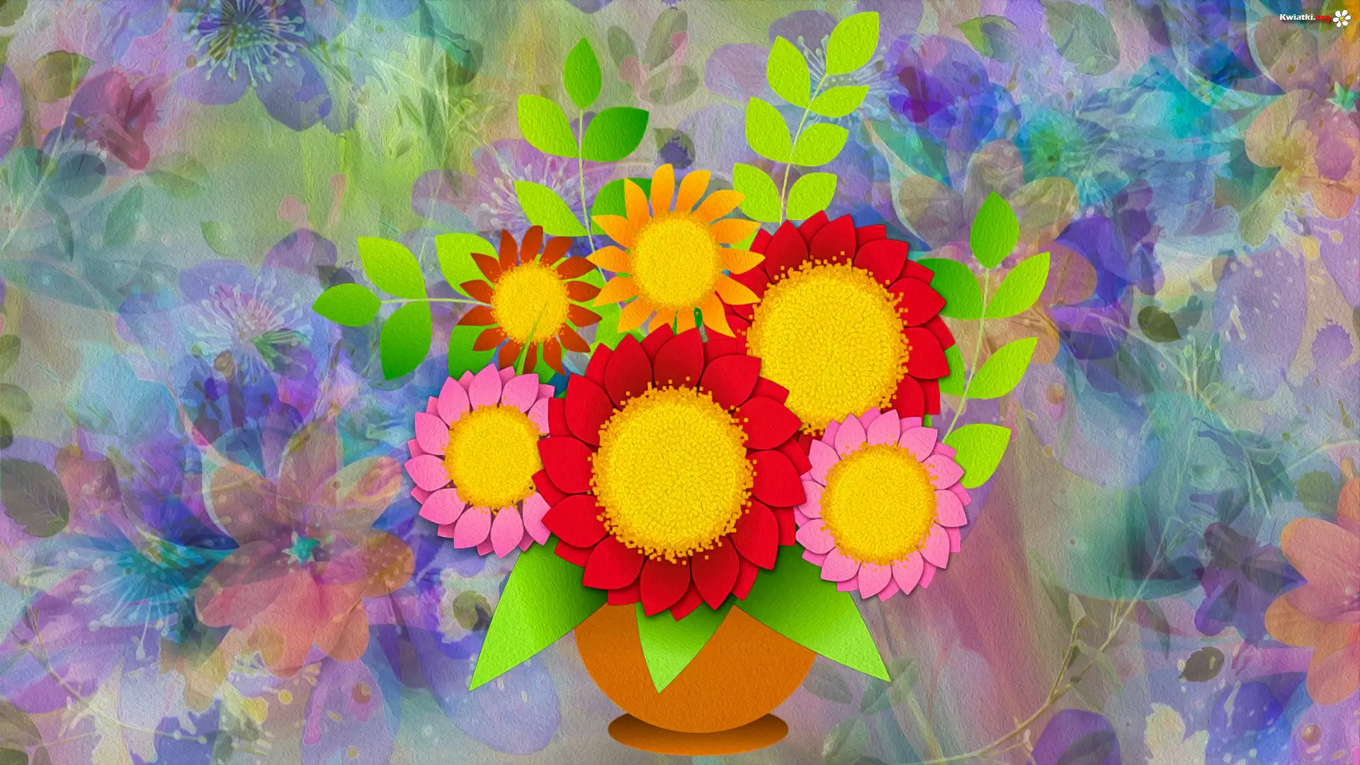 Kwiaty, Bukiet, Wazon, Kolorowe tło, Grafika - Zdjęcia