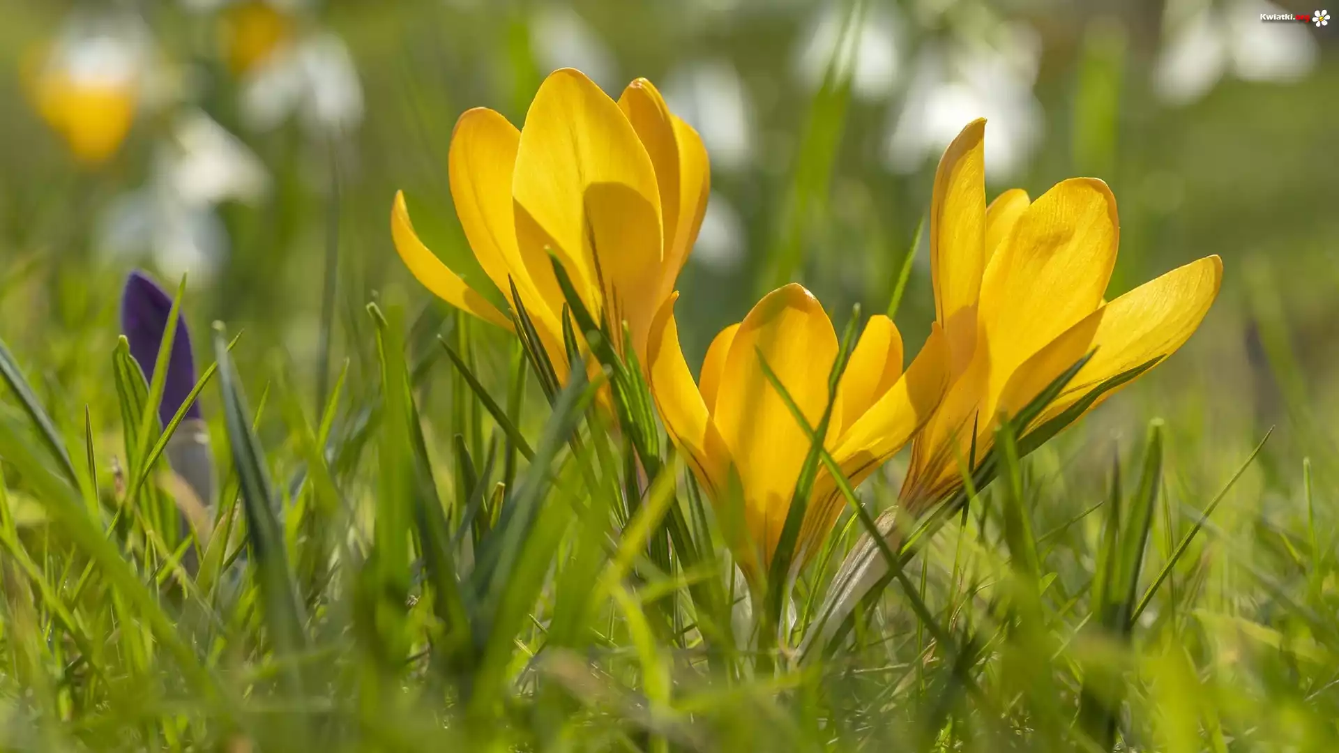 Kwiat Żółte, Kwiaty, Trzy, Krokusy, Kępka