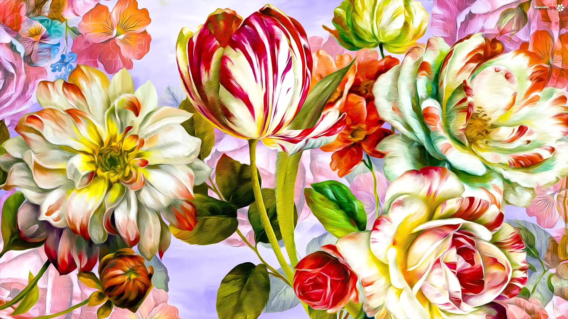 Kwiaty, Kolorowe, Róże, Tulipan, Grafika - Zdjęcia
