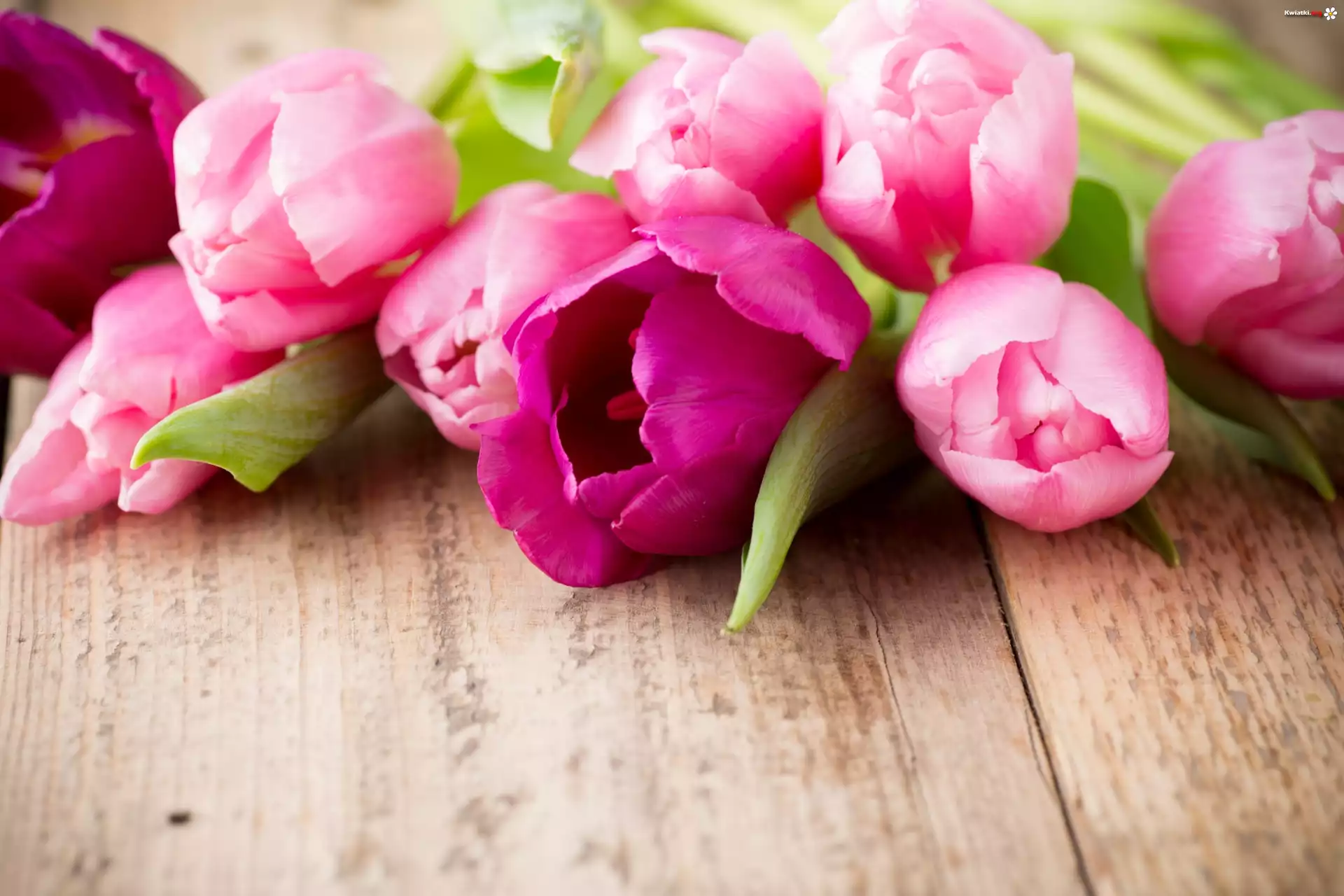 Kwiat Kwiaty, Różowe, Tulipany, Deski