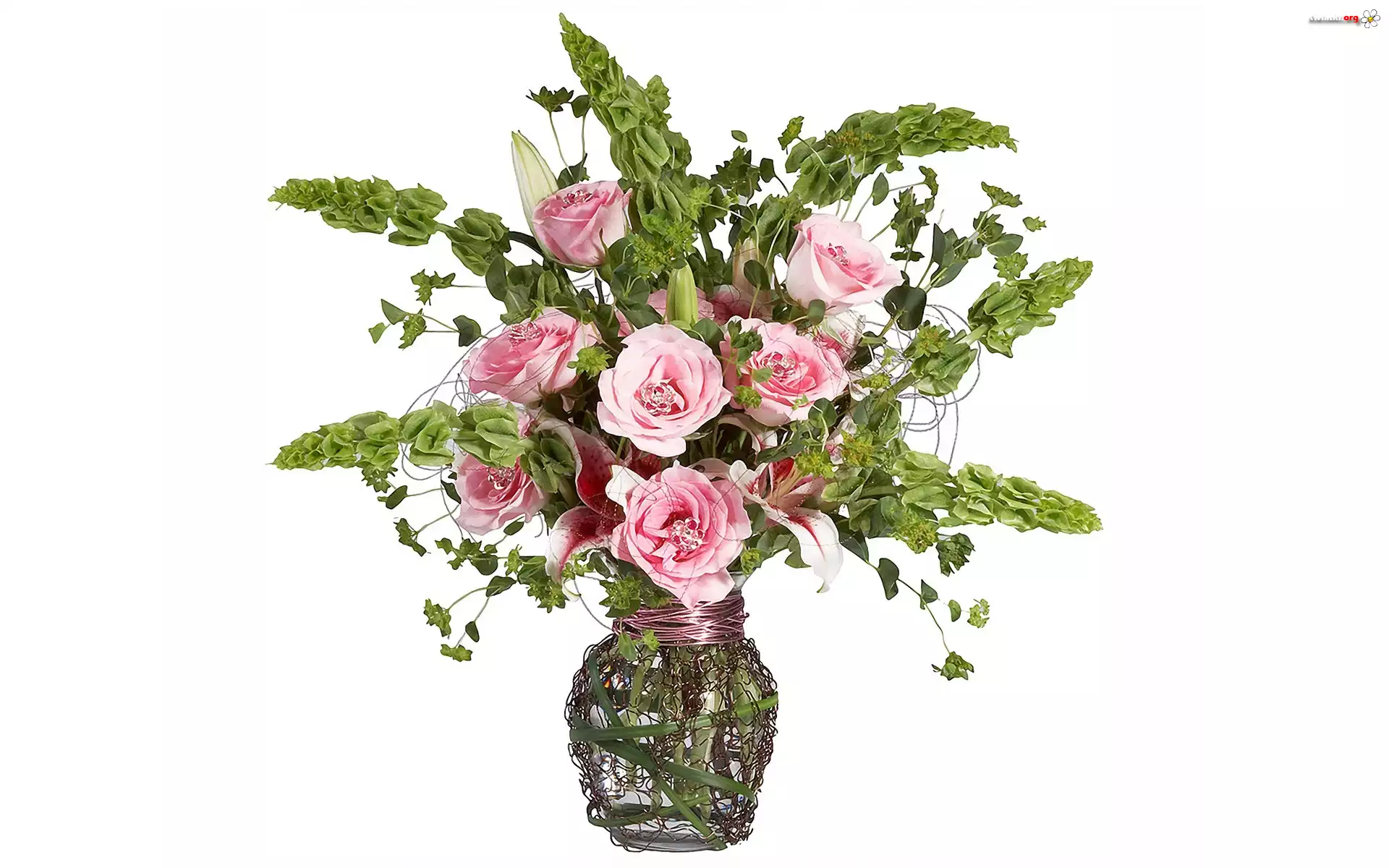 Kwiaty, Bukiet, Wazon, Róże - Zdjęcia