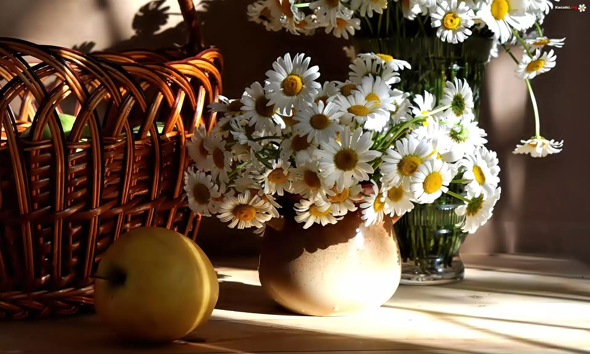 Kwiaty, Kosz, Wazon, Jabłko - Zdjęcia