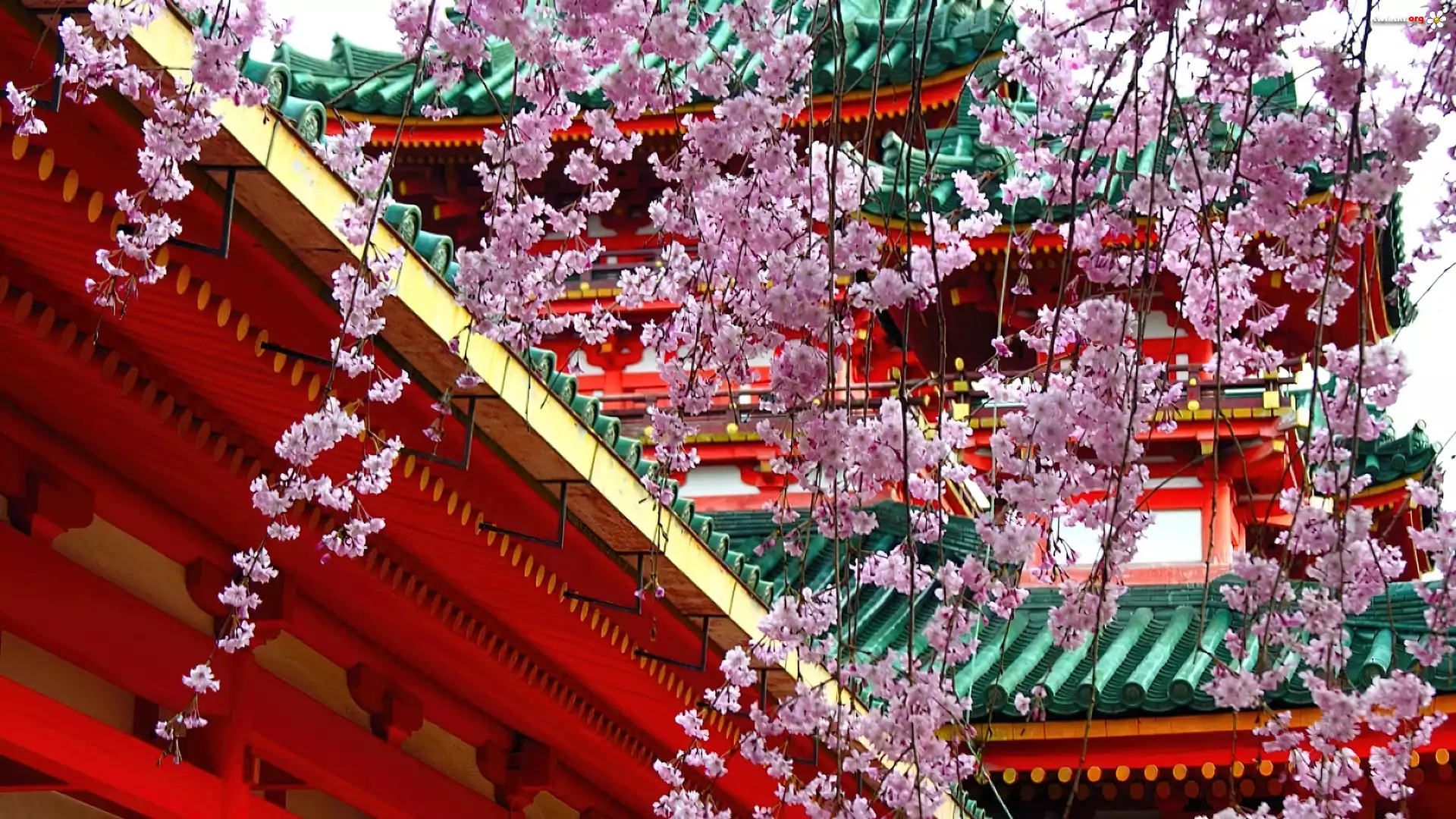 Kwiaty, Wiśni, Świątynia, Japonia - Zdjęcia