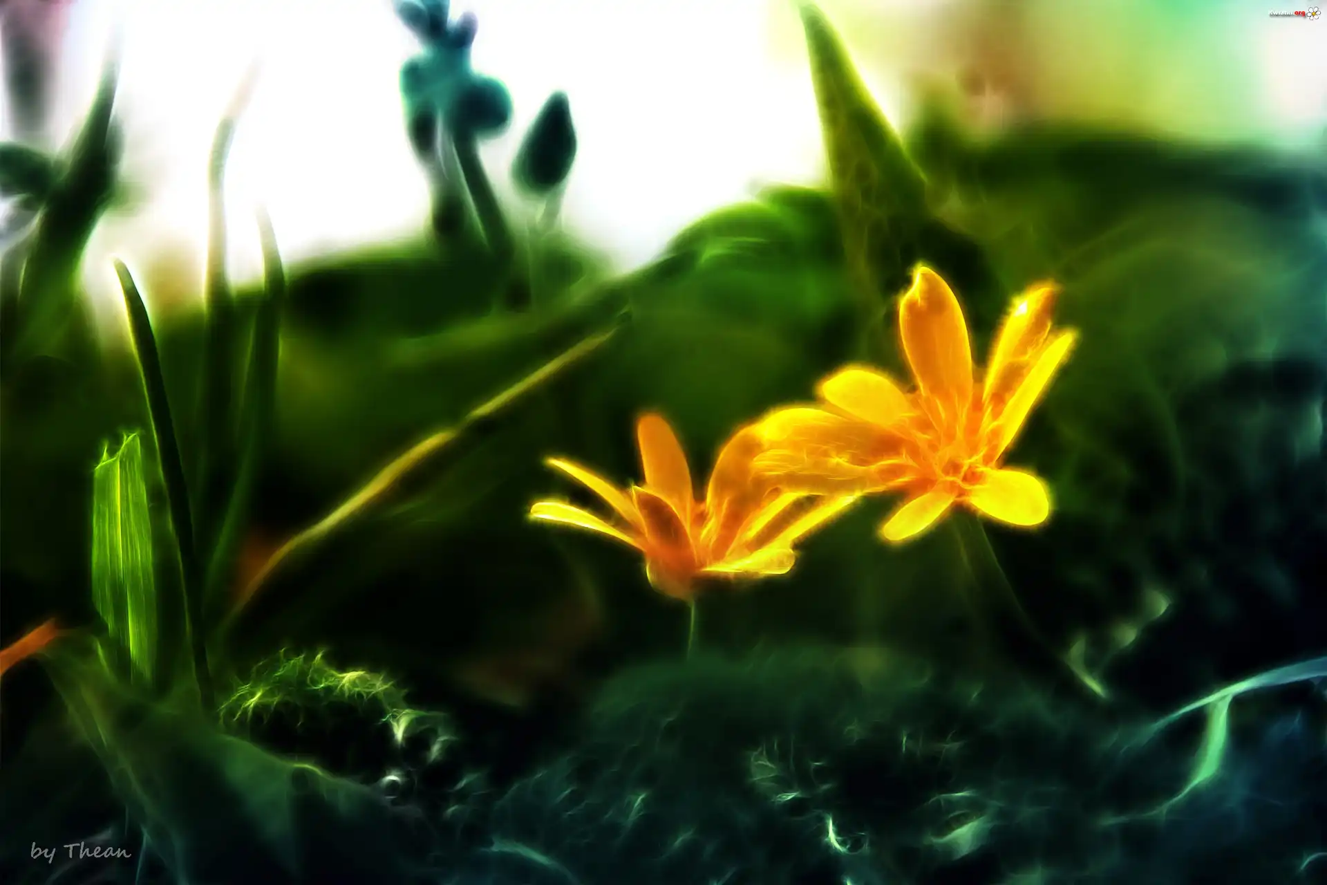 Żółte, Wiosenne, Kwiaty, Fractalius - Zdjęcia
