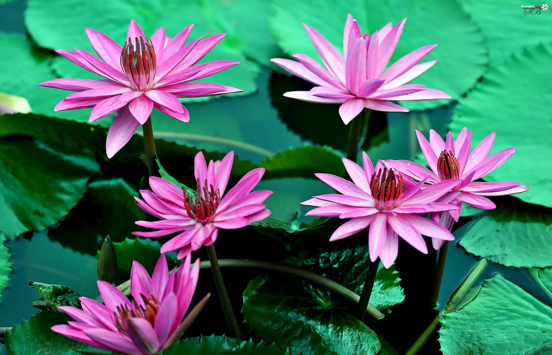 Kwiaty, Lilie, Wodne, Listki - Zdjęcia